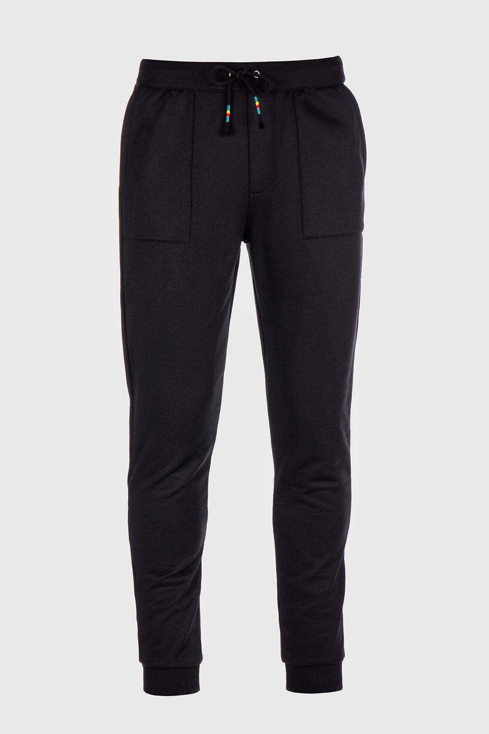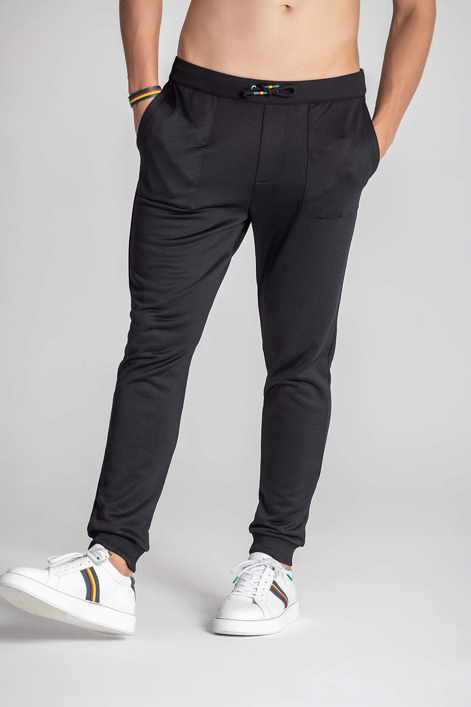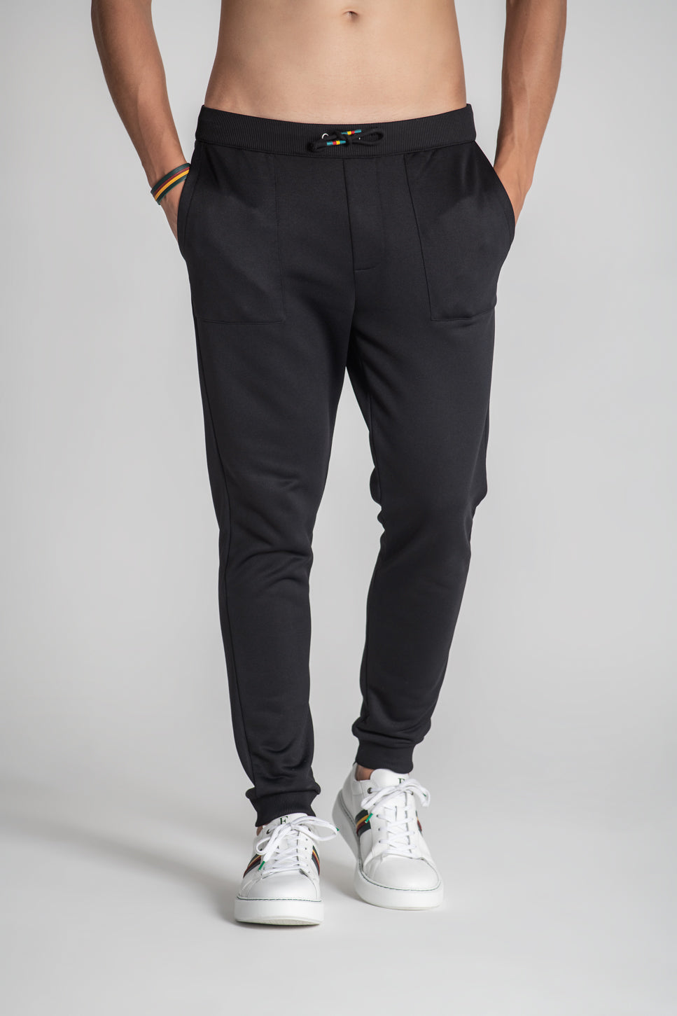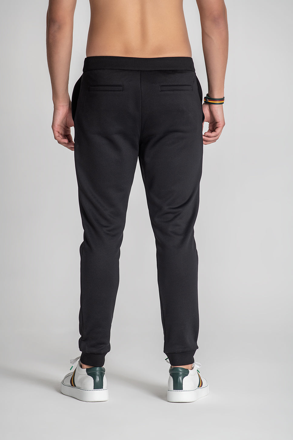 Calça de fato de treino com bolsos de faca nas laterais. Cordões para facilitar o ajuste. Bolsos de vivo nas costas. Costuras interiores avivadas com tecido estampado alusivo ao tema da coleção. Logótipo bordado nas costas à cor da peça.