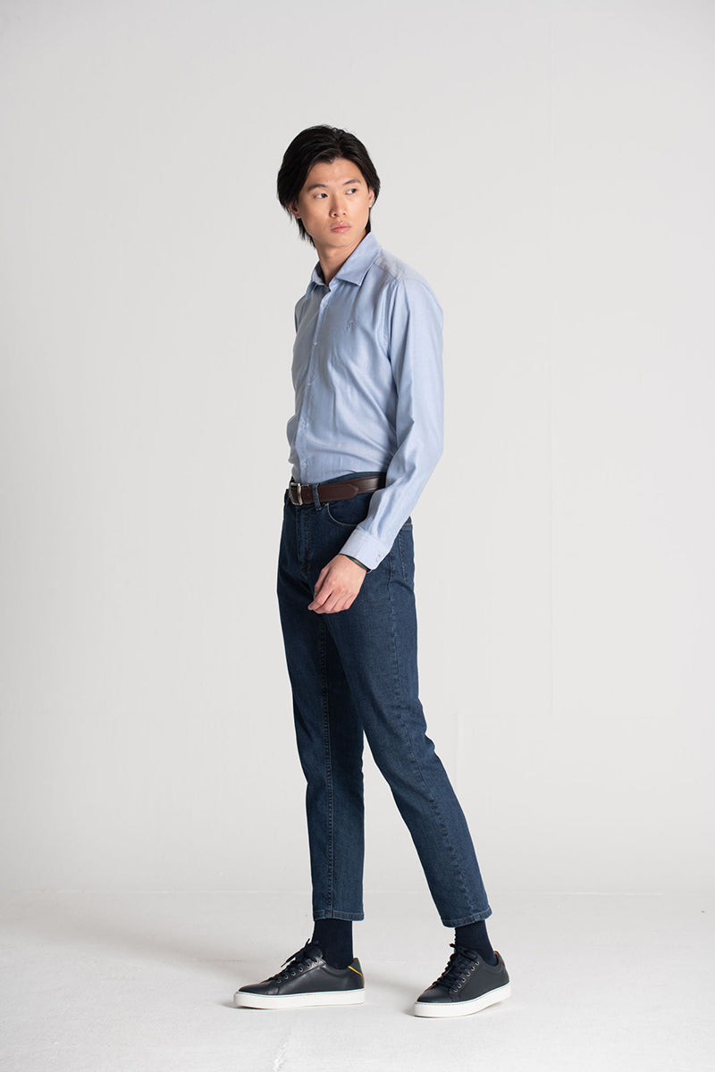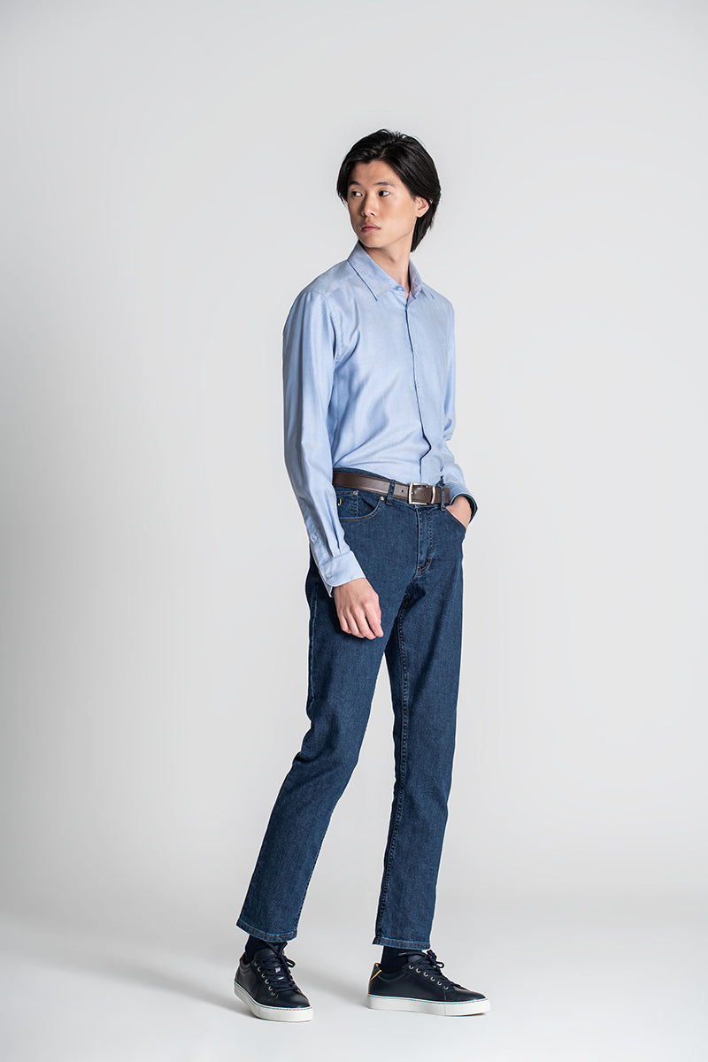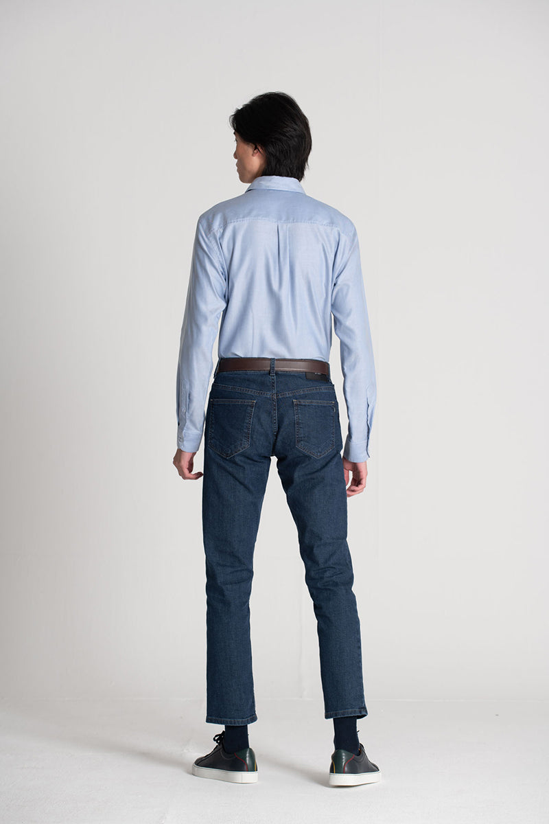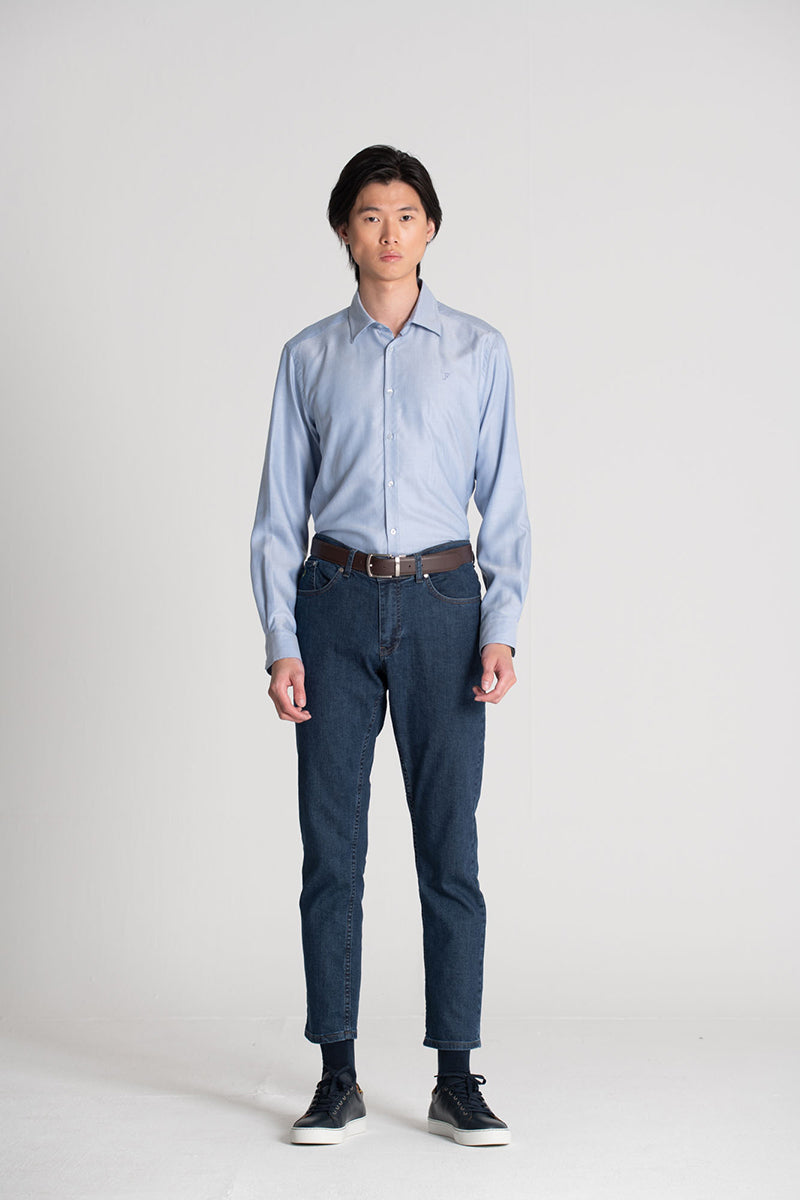 Camisa sustentável estilo regular com malhete simples. Escapulário com machos nas costas. Camisa abotoada no meio frente por 8 botões. Punhos arredondados. Logótipo da marca bordado à cor da peça.