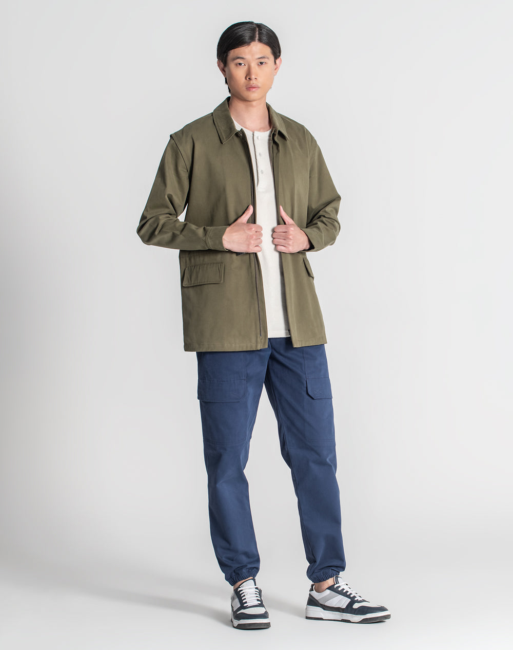 Disponível em: azul-marinho, olive night e bege.