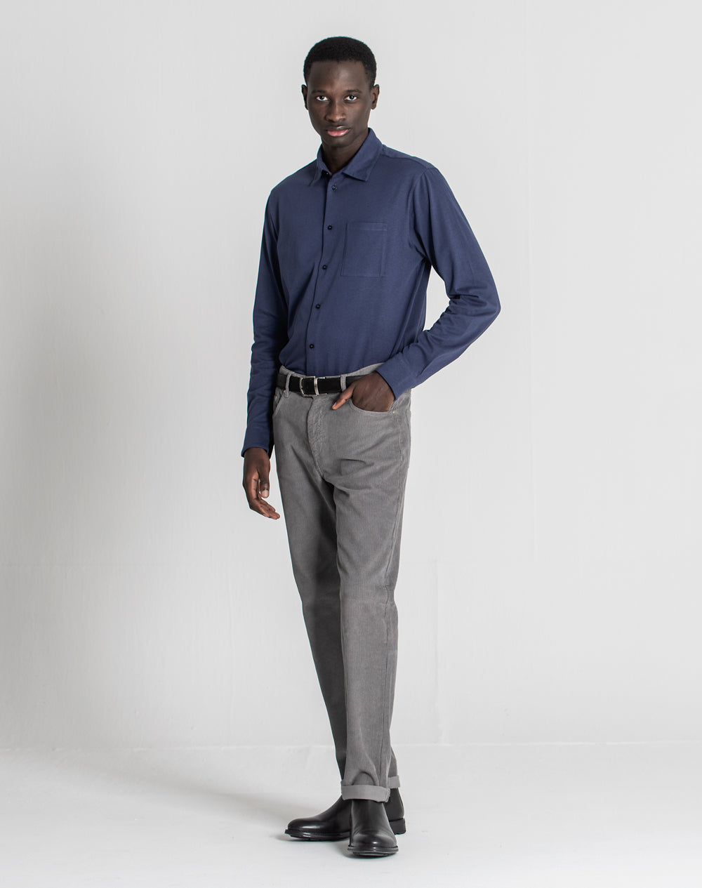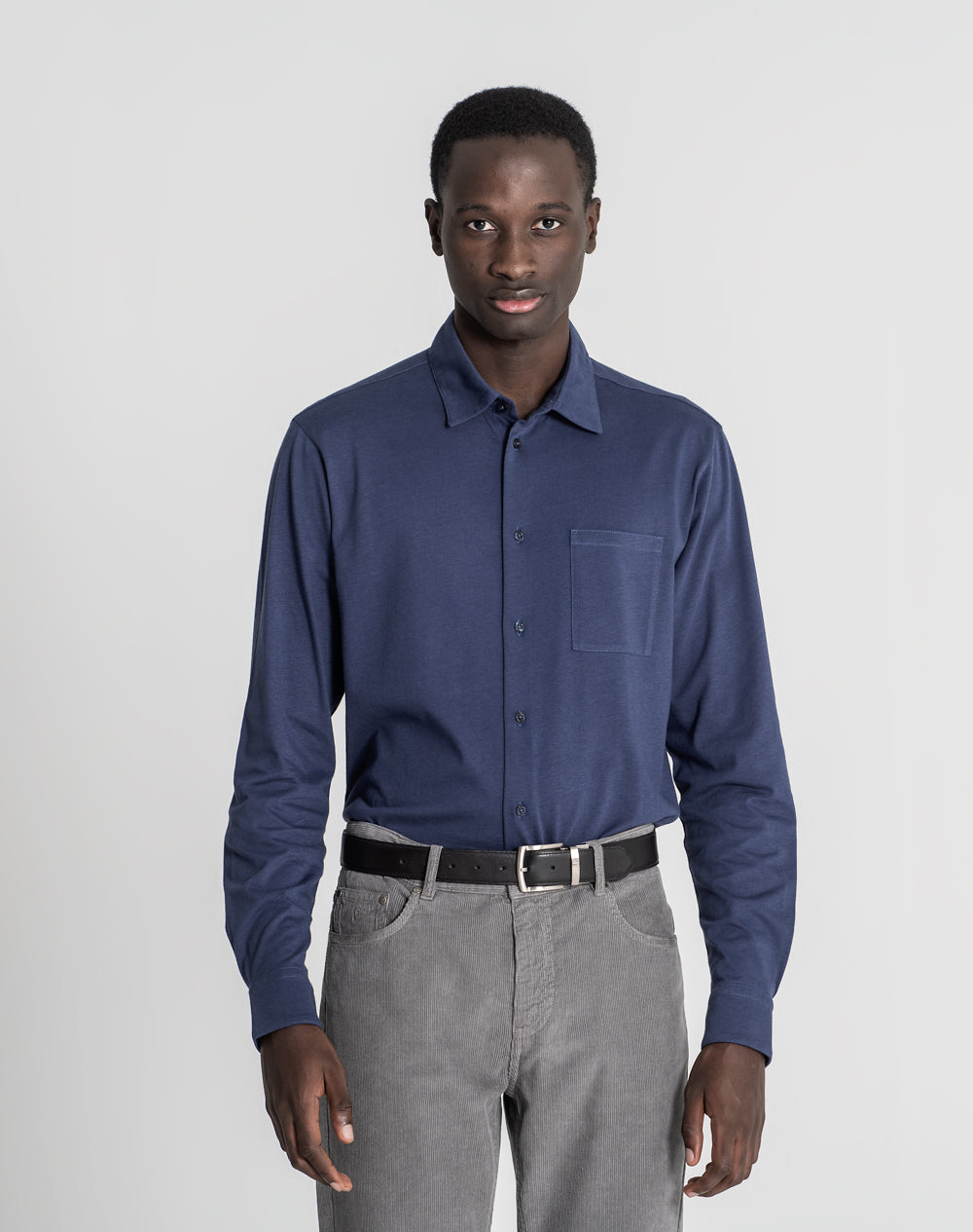 Camisa regular com malhete simples em jersey orgânico. Jersey orgânico suave adequado à estação Outono/Inverno. Bolso de chapa na parte superior.