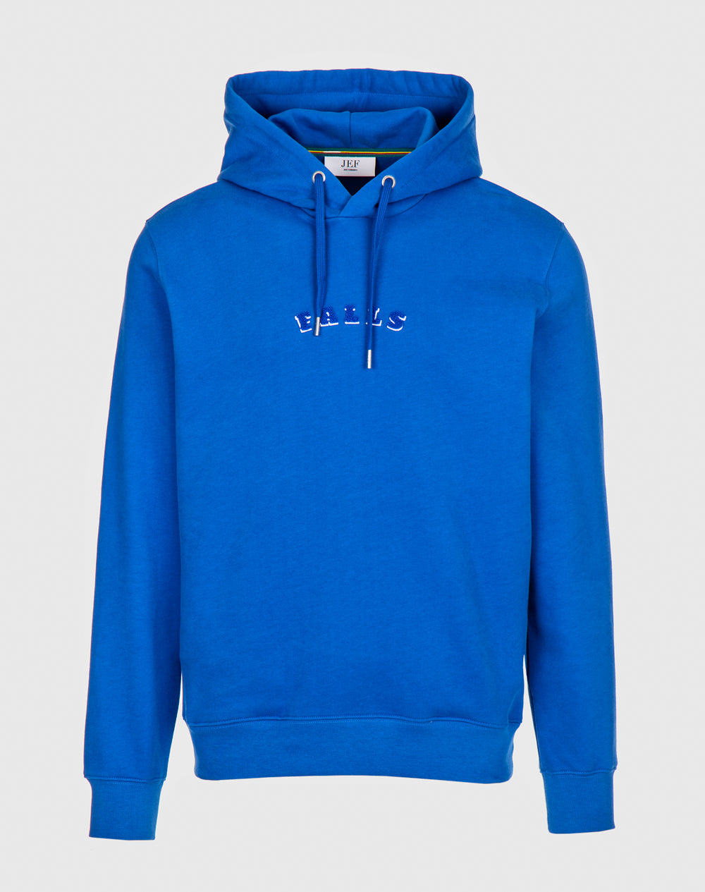 Hoodie com capuz forrado na própria malha. Cordões largos para ajuste do capuz. Bolsos laterais metidos nas costuras. Forro interior dos bolsos em tecido estampado (all-over alusivo ao conceito da coleção). Bordado FALLS à cor da peça.