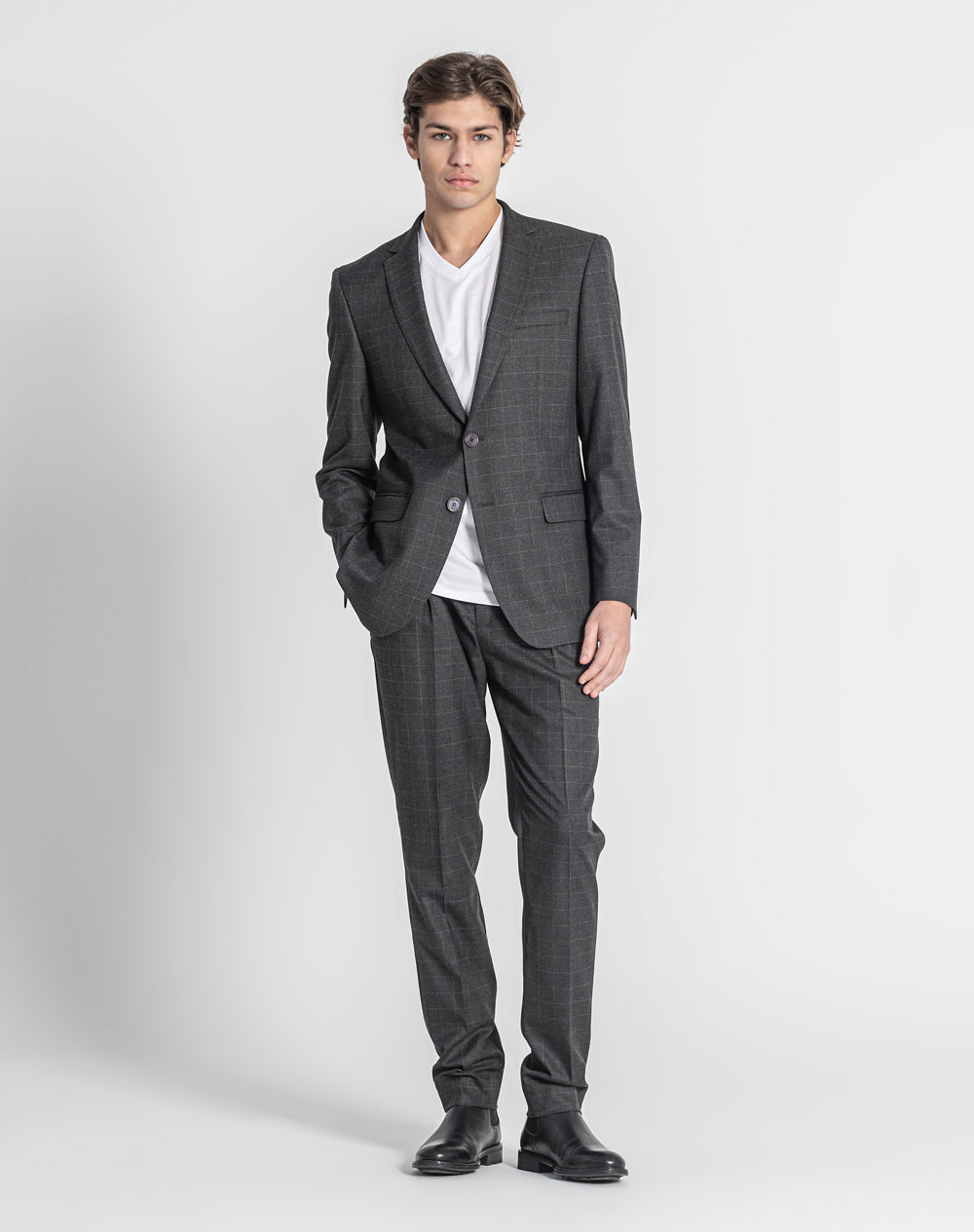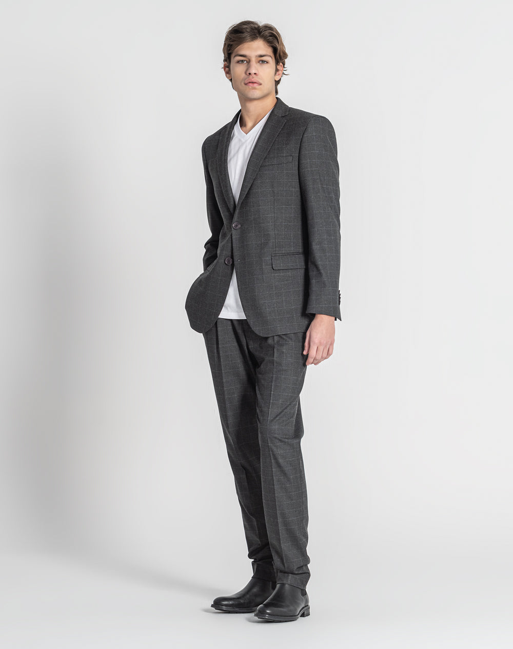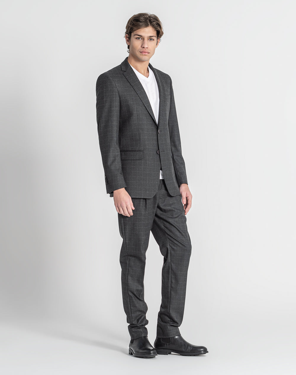 Blazer clássico com decote e abas em bico. Abotoado no meio frente por dois botões (casa de olhal) e quatro botões nos punhos. Bolsos de pala à frente com linha viva no peito e patch na anca. Racha no meio costas. Pin do logótipo com cores da marca. Todo o interior forrado de tecido com logótipos da marca.