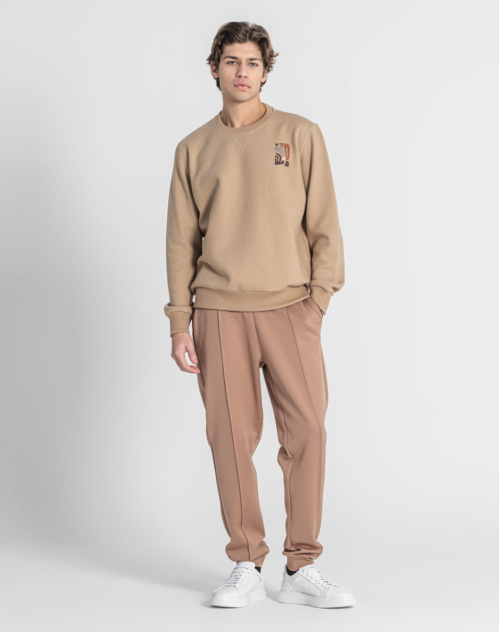 Sweatshirt com decote redondo e manga normal. Efeito triângulo através de pesponto. Logótipo JEF bordado nas costas na cor de contraste.