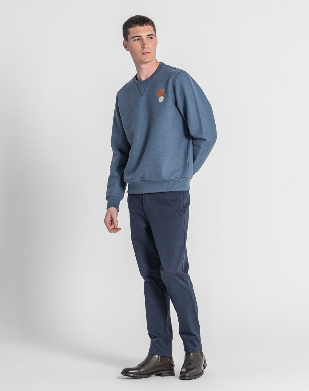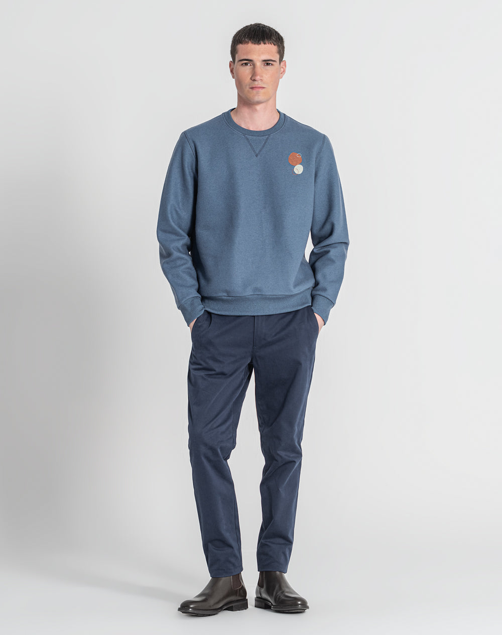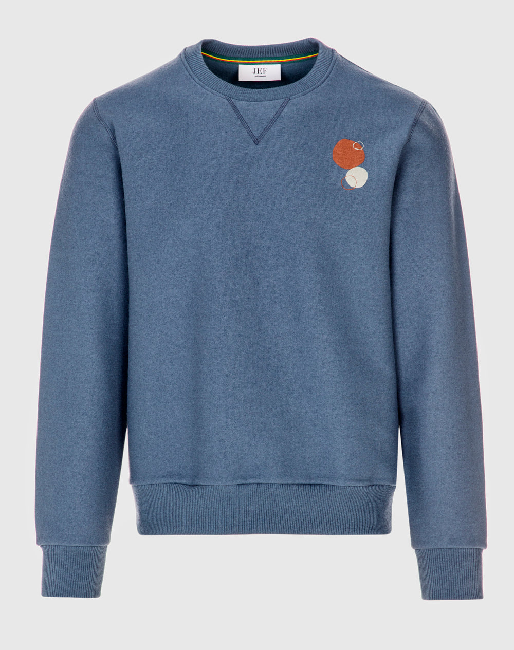 Sweatshirt com decote redondo e manga normal. Efeito triângulo através de pesponto. Logótipo JEF bordado nas costas na cor de contraste.