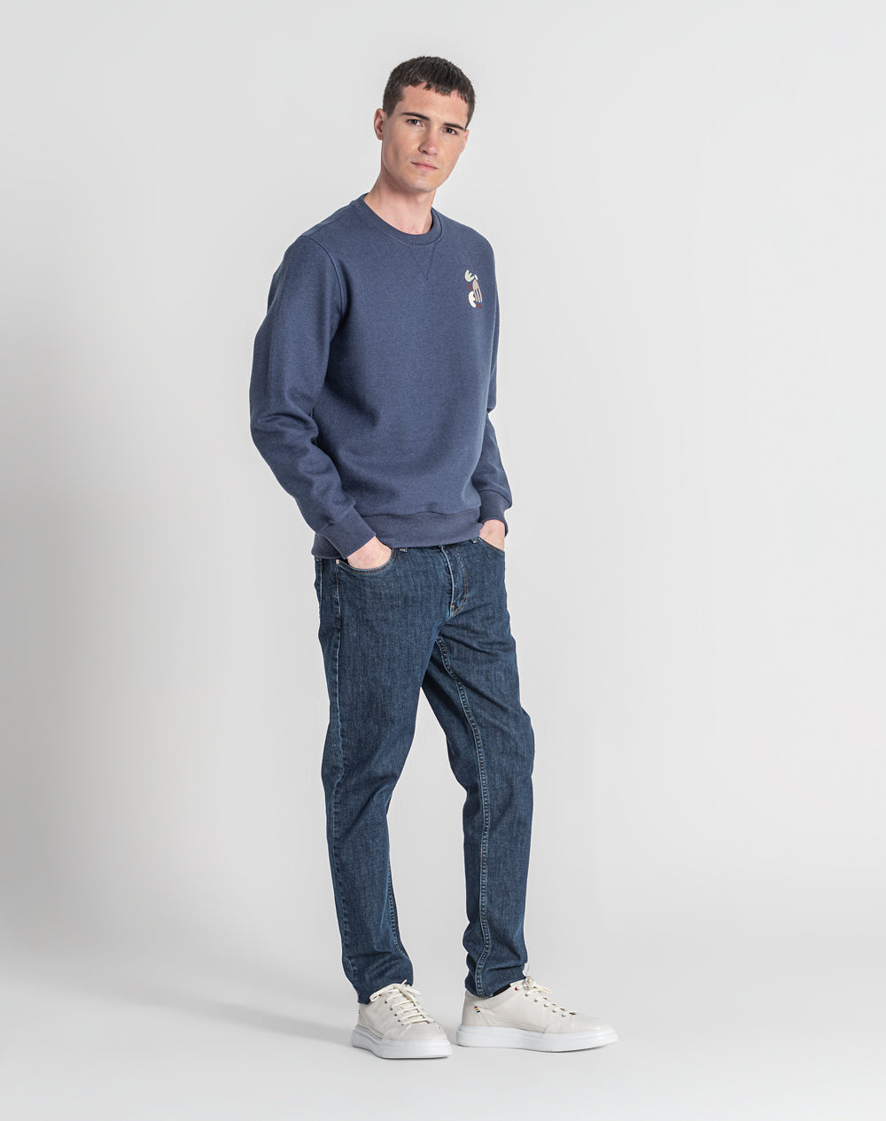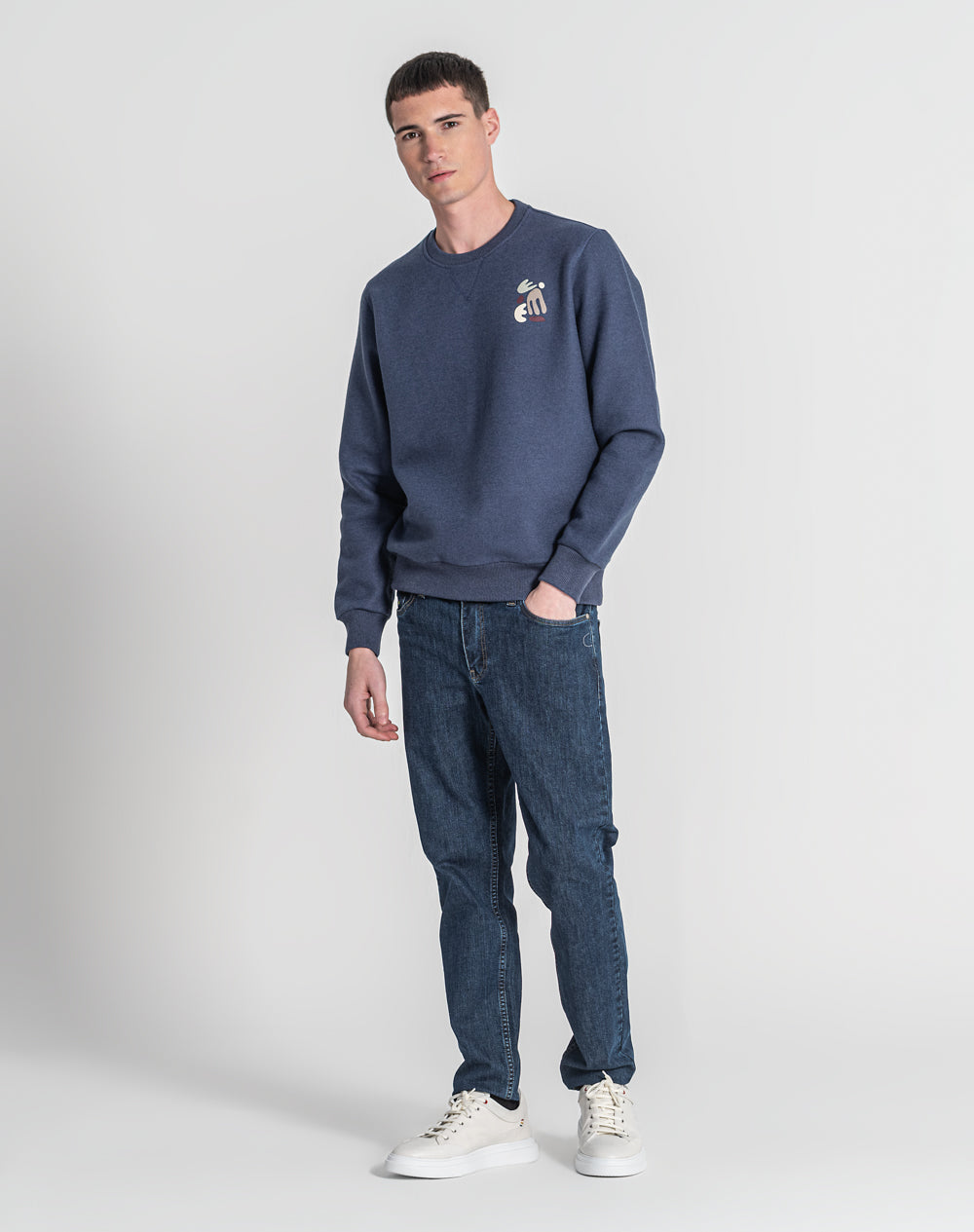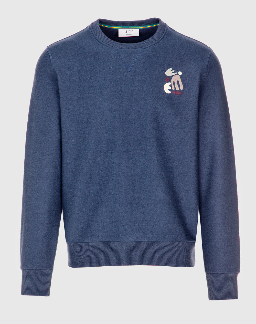 Sweatshirt com decote redondo e manga normal. Efeito triângulo através de pesponto. Logótipo JEF bordado nas costas na cor de contraste.