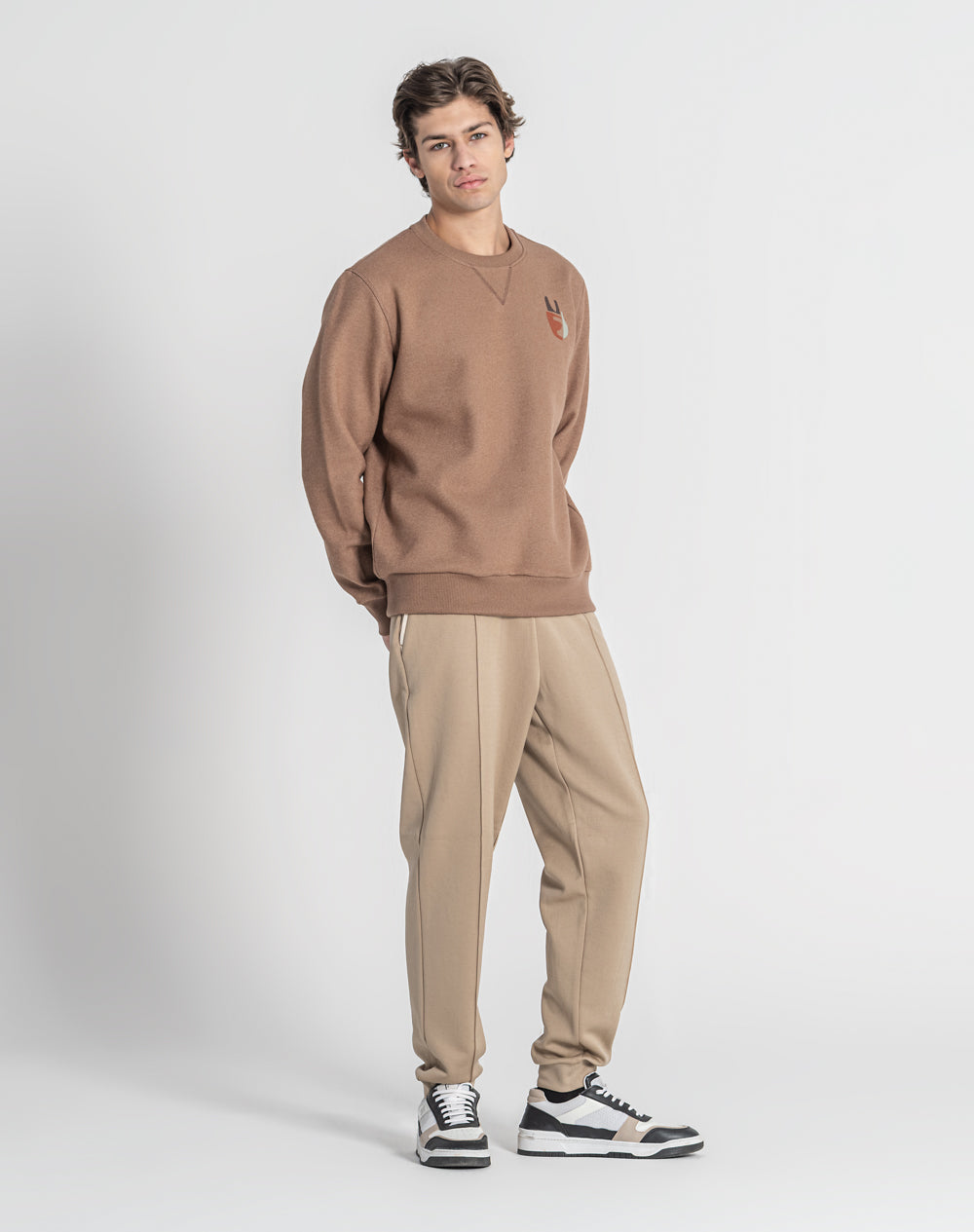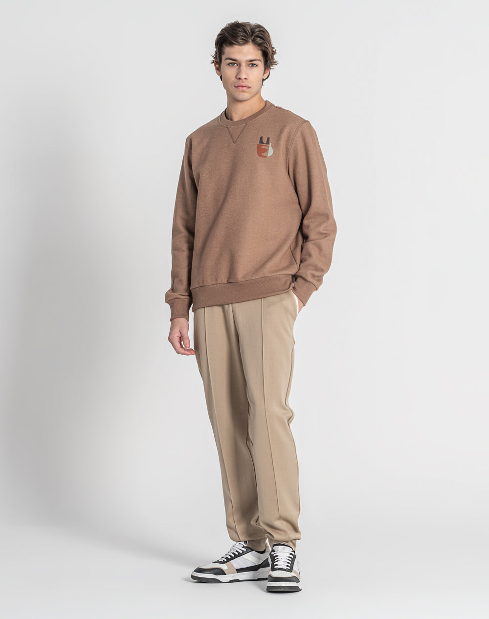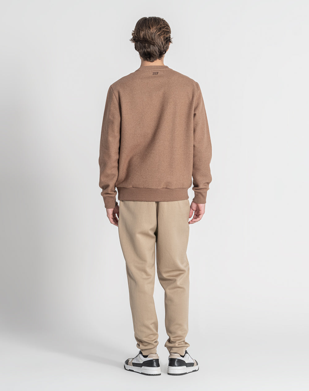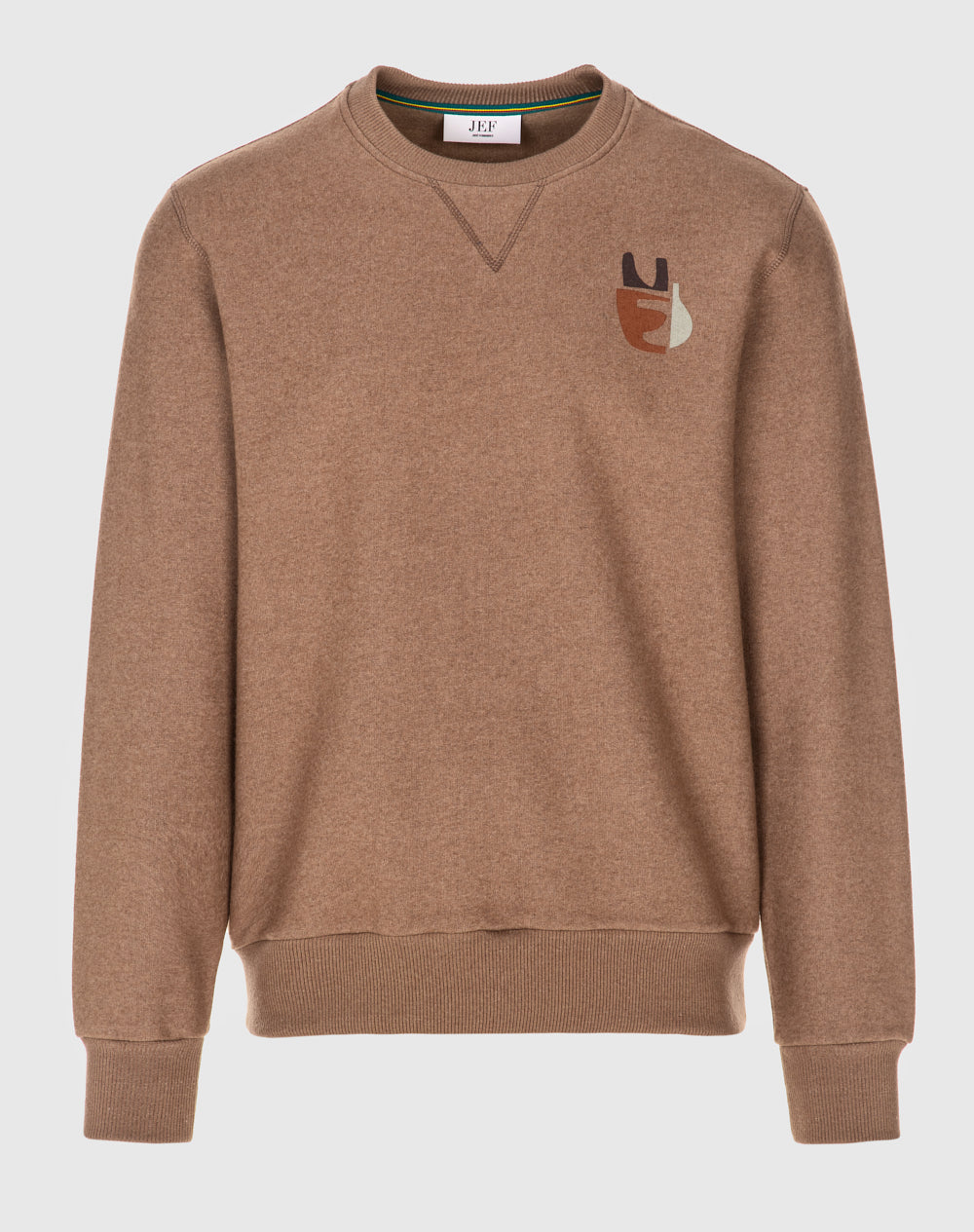 Sweatshirt com decote redondo e manga normal. Efeito triângulo através de pesponto. Logótipo JEF bordado nas costas na cor de contraste.