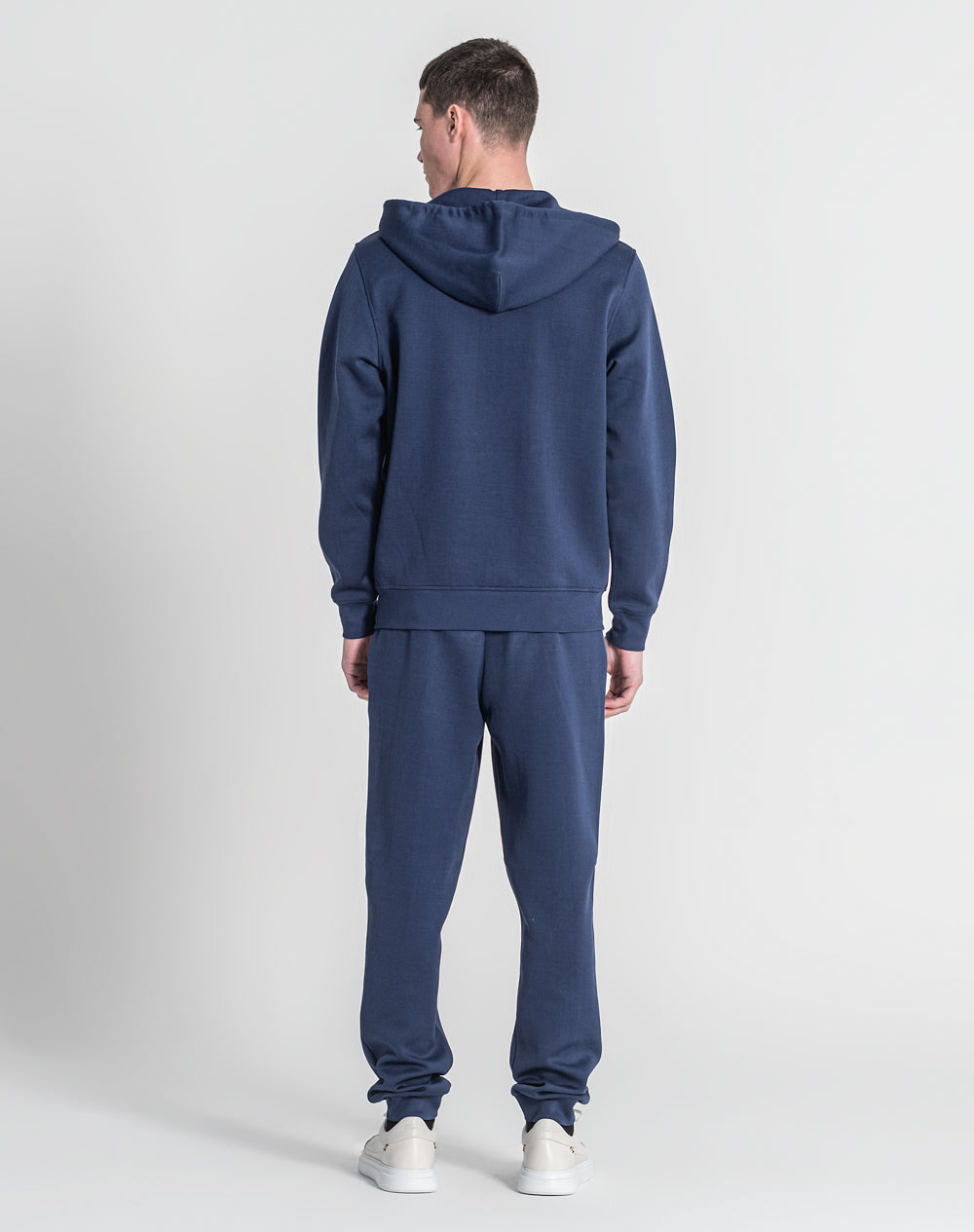 Hoodie com capuz e decote em V incorporado. Cordões para melhor ajuste em contraste. Bolso canguru. Logótipo da marca bordado à cor da peça.