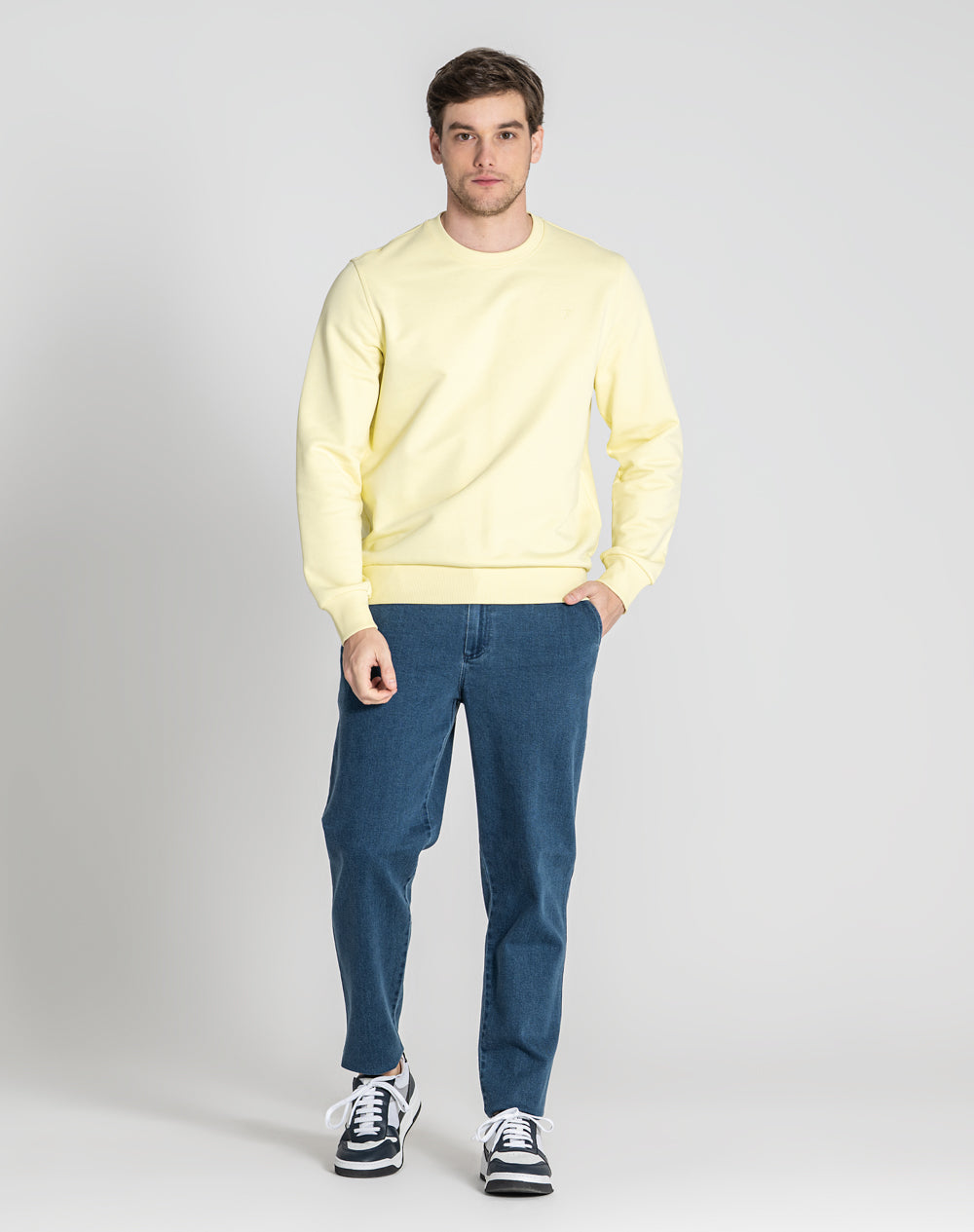Sweat básica com manga normal. Logótipo da marca bordado à cor da peça. Logótipo JEF bordado nas costas à cor da peça.