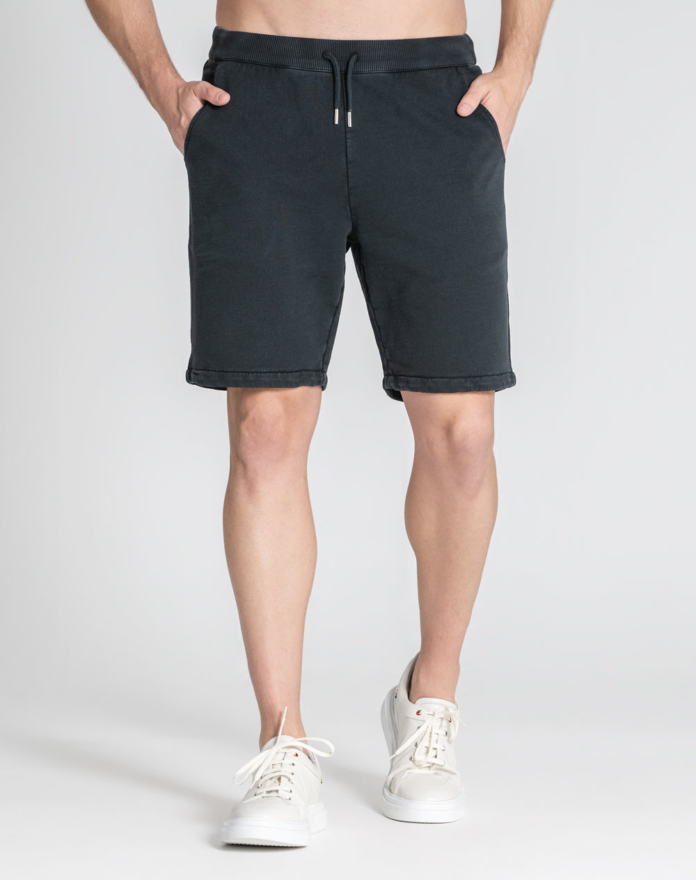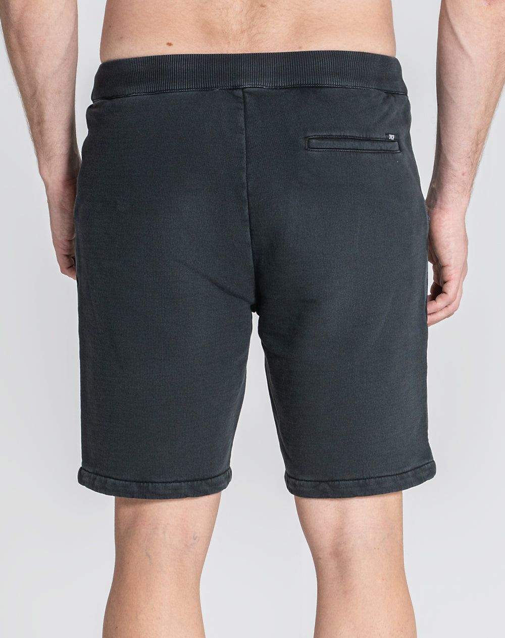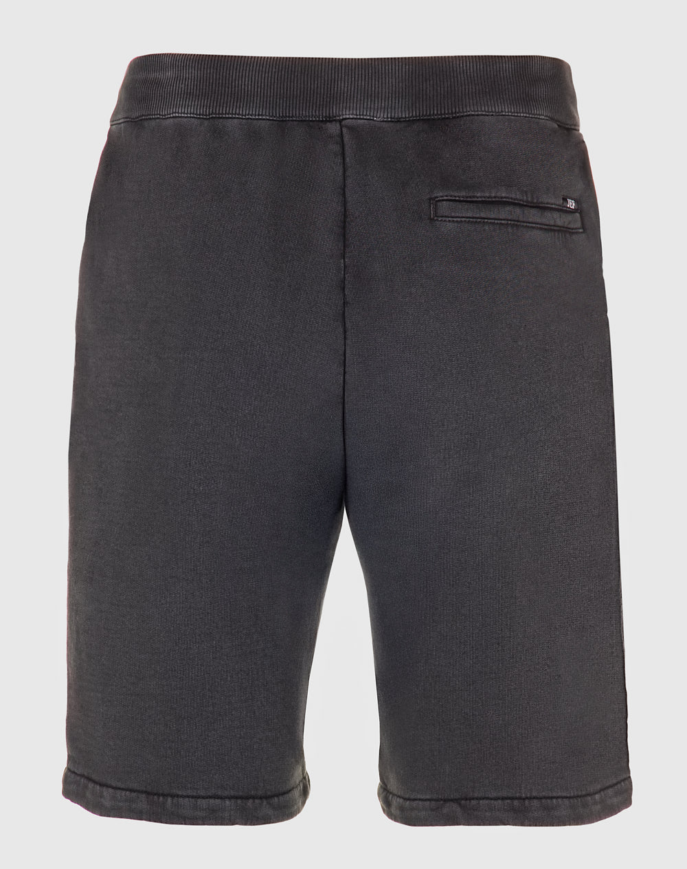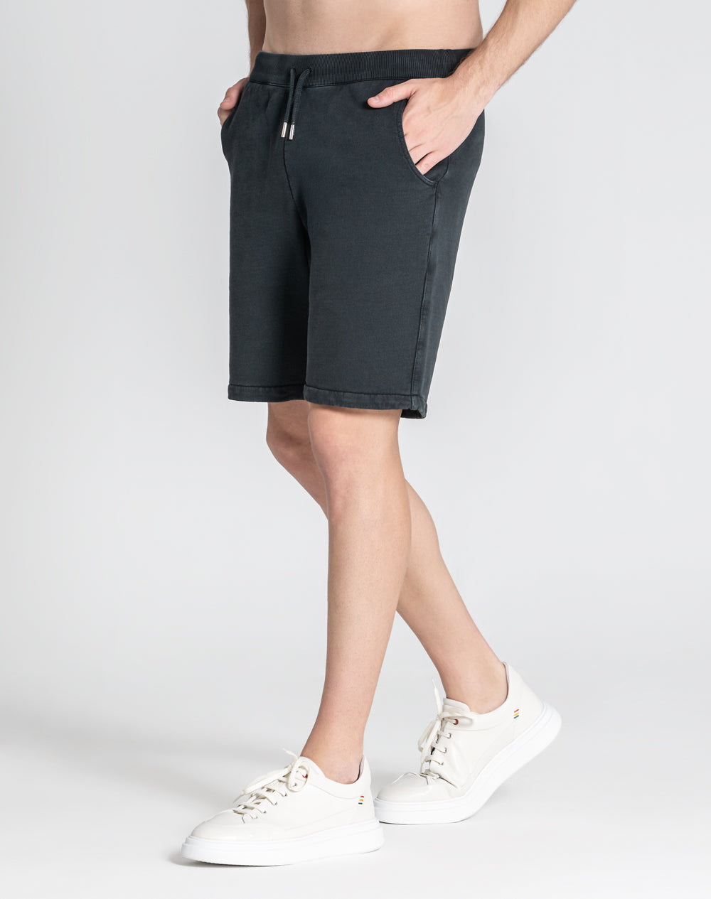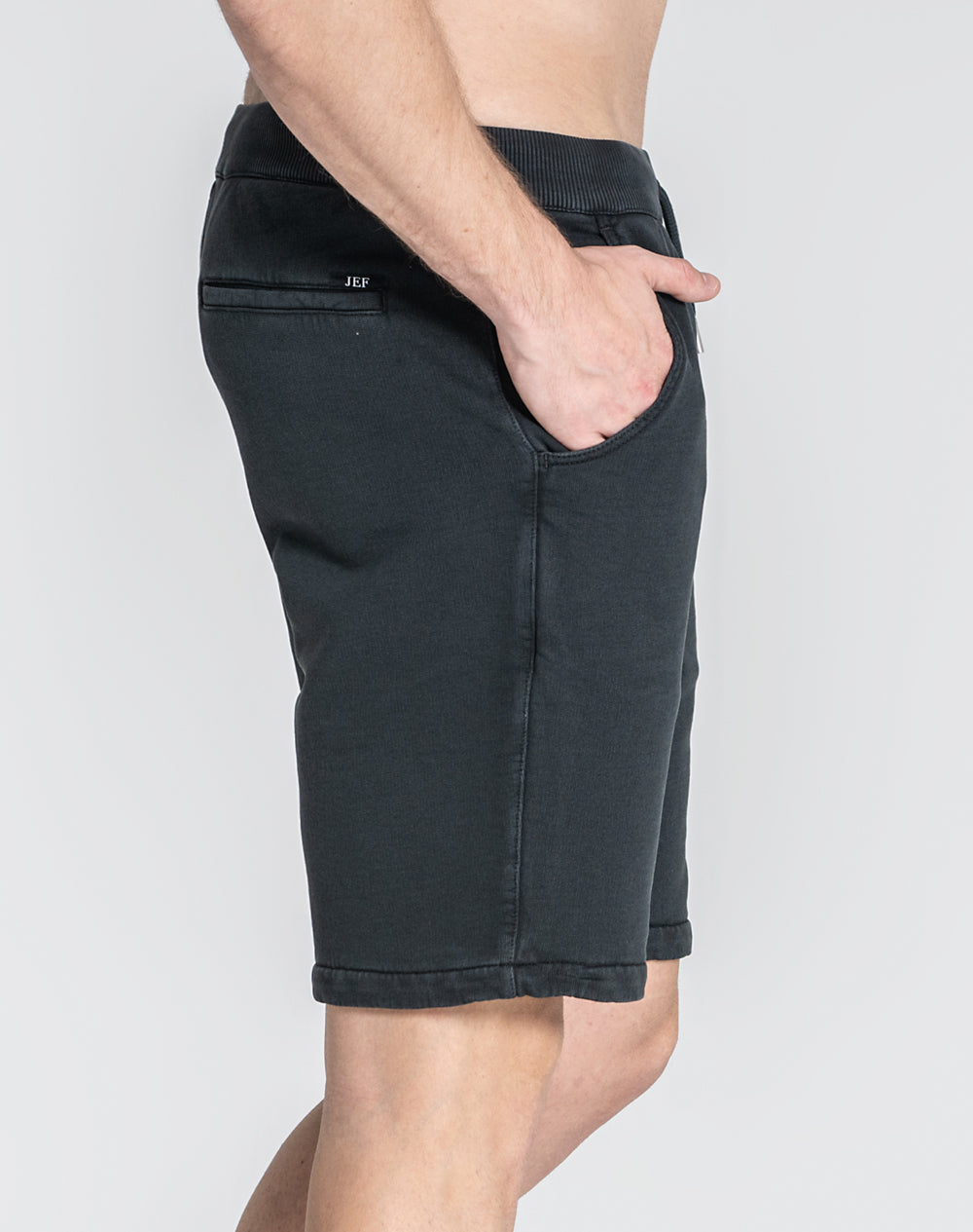 Calção com acabamento dye fast. Bolsos de faca arredondados na frente e bolso de vivo nas costas com etiqueta preta JEF na horizontal por cima do bolso. Cinto em rib com cordões para melhor ajuste.