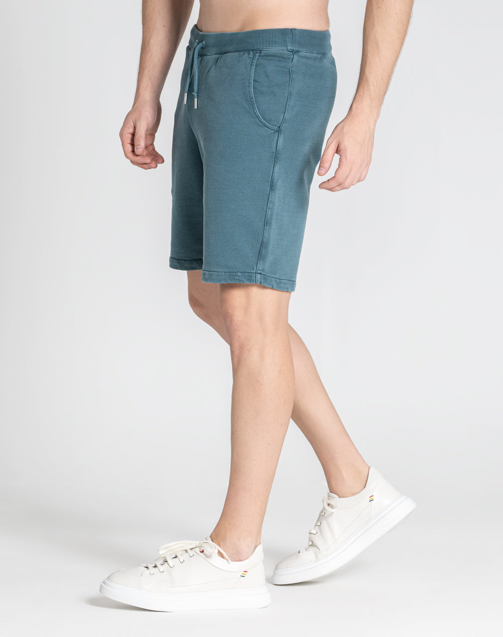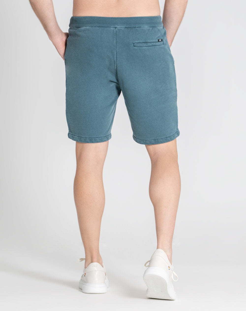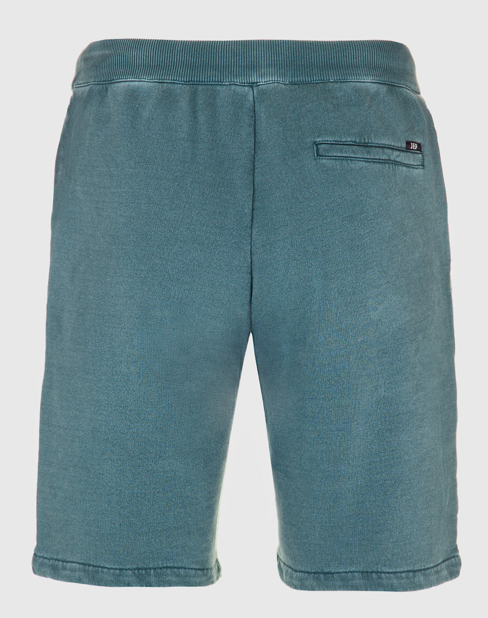 Calção com acabamento dye fast. Bolsos de faca arredondados na frente e bolso de vivo nas costas com etiqueta preta JEF na horizontal por cima do bolso. Cinto em rib com cordões para melhor ajuste.