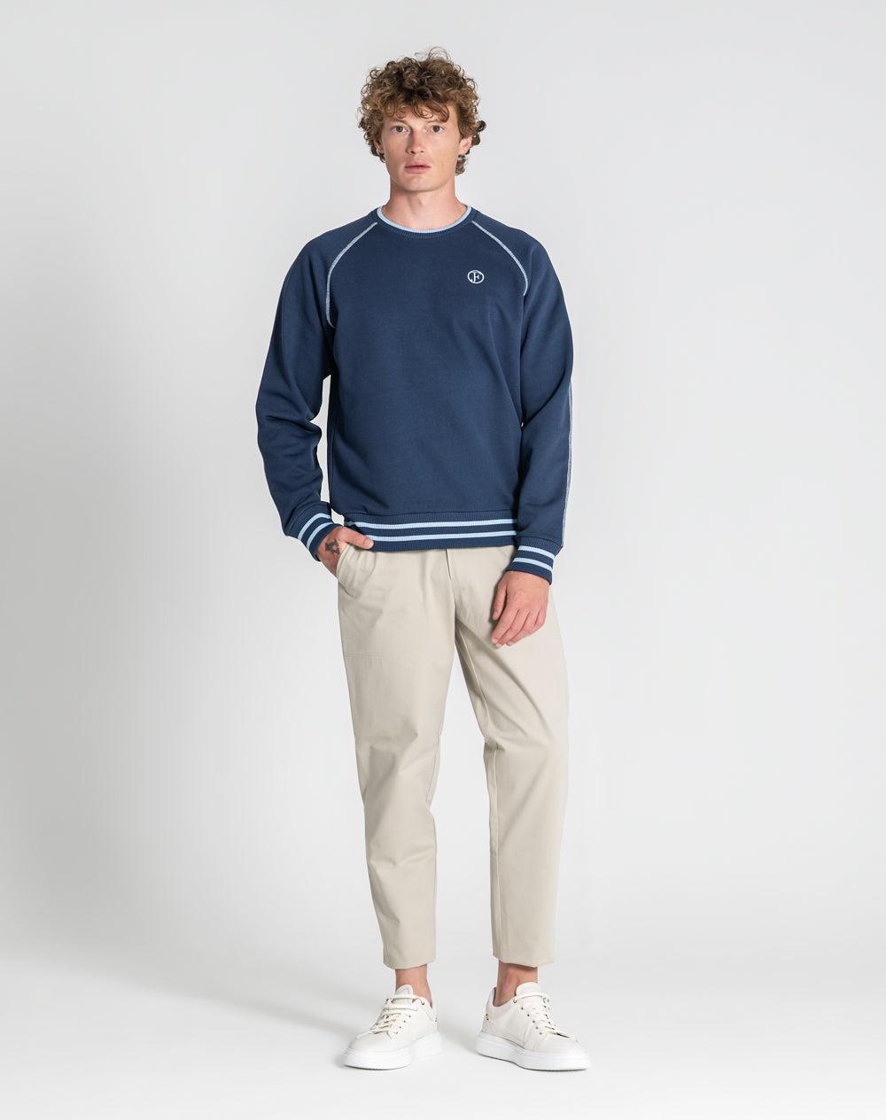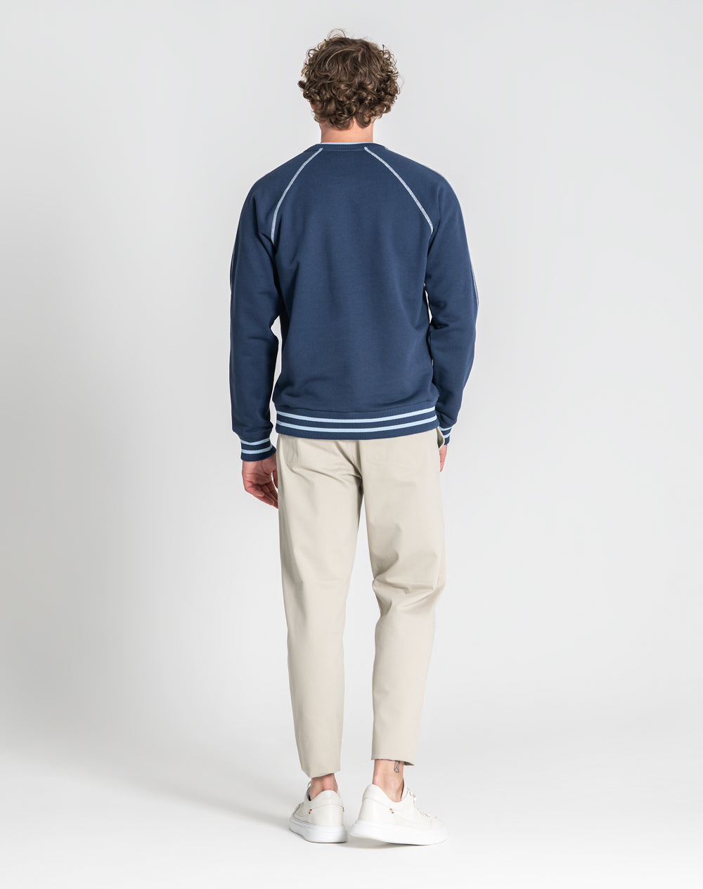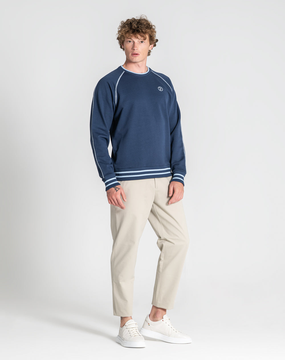Sweat manga raglan e decote redondo. Logótipo da marca bordado na frente em cor de contraste. Cavas com recobrimento 3 agulhas em cor de contraste. Gola, punhos e cinto com riscas na cor de contraste.