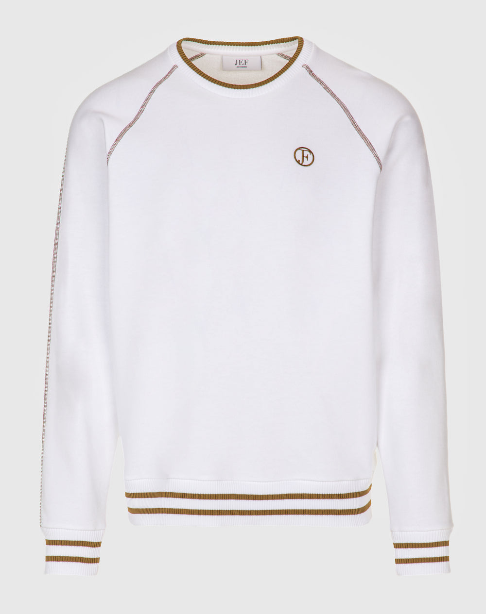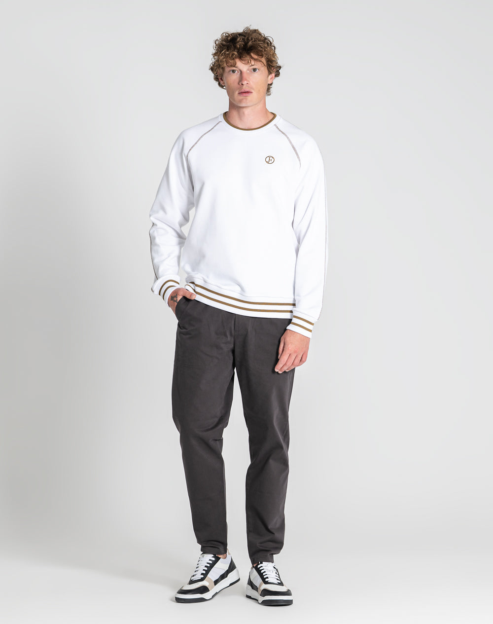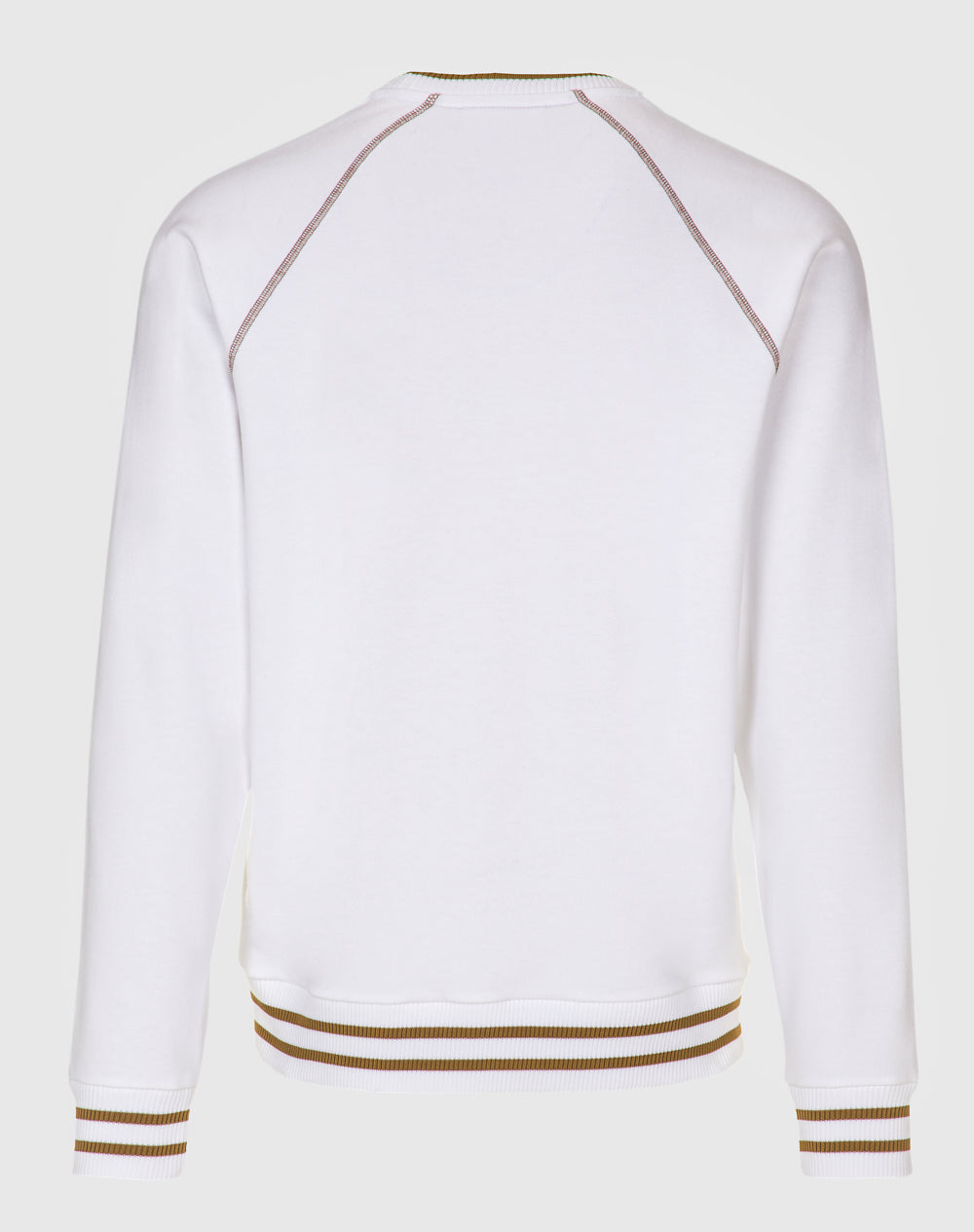 Sweat manga raglan e decote redondo. Logótipo da marca bordado na frente em cor de contraste. Cavas com recobrimento 3 agulhas em cor de contraste. Gola, punhos e cinto com riscas na cor de contraste.