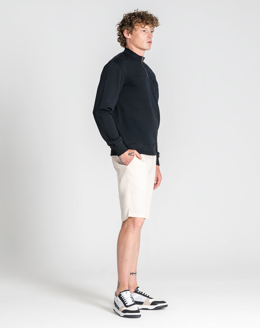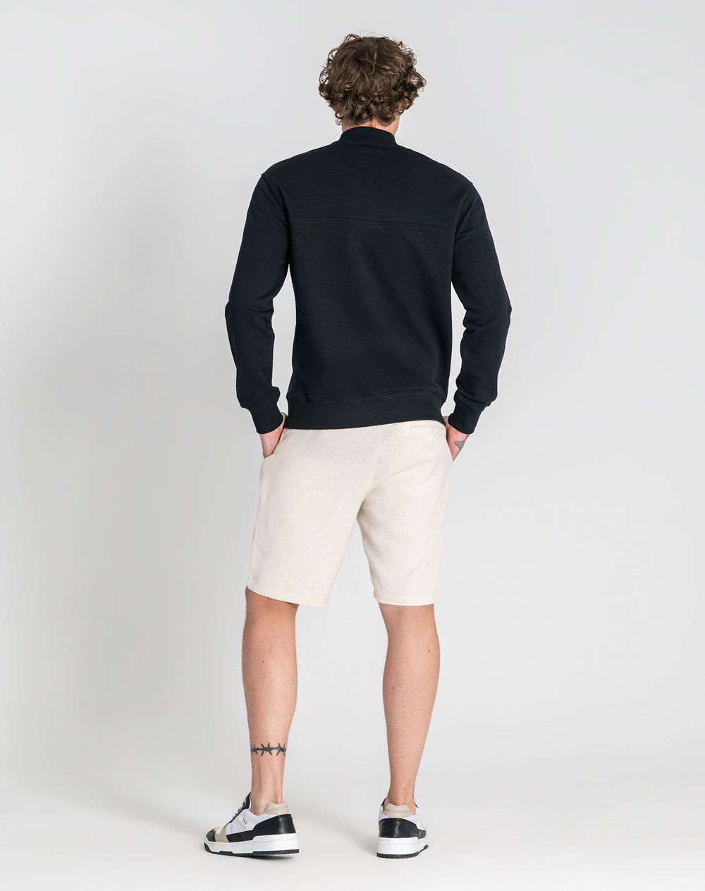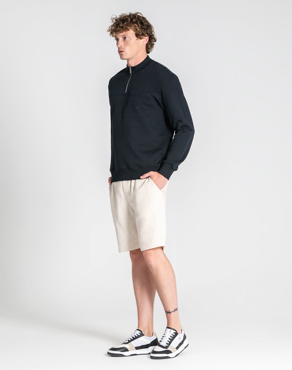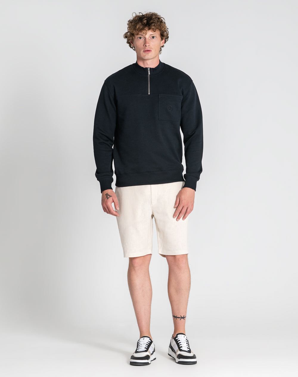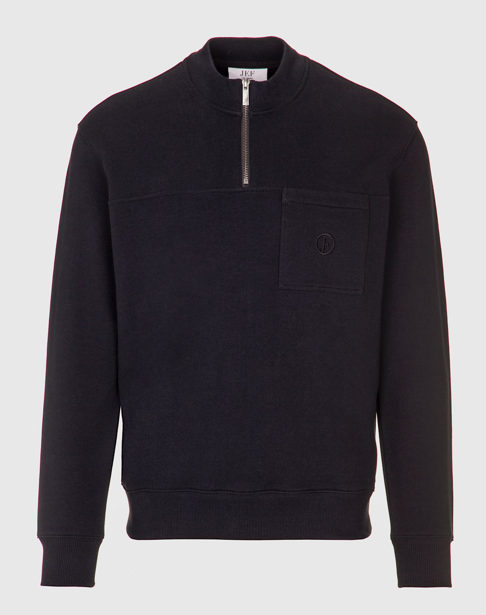 Sweat de gola com fecho 100% algodão orgânico. Bolso na frente com logótipo da marca bordado à cor da peça.