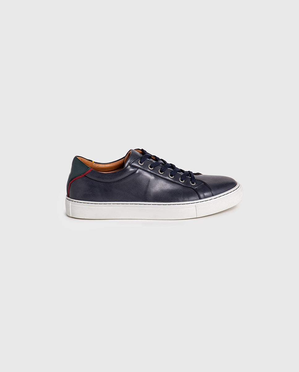 Sapatilha estilo clássico com calcanhar com cores da marca. Sola em borracha. Gravação “José Fernandes” no interior.