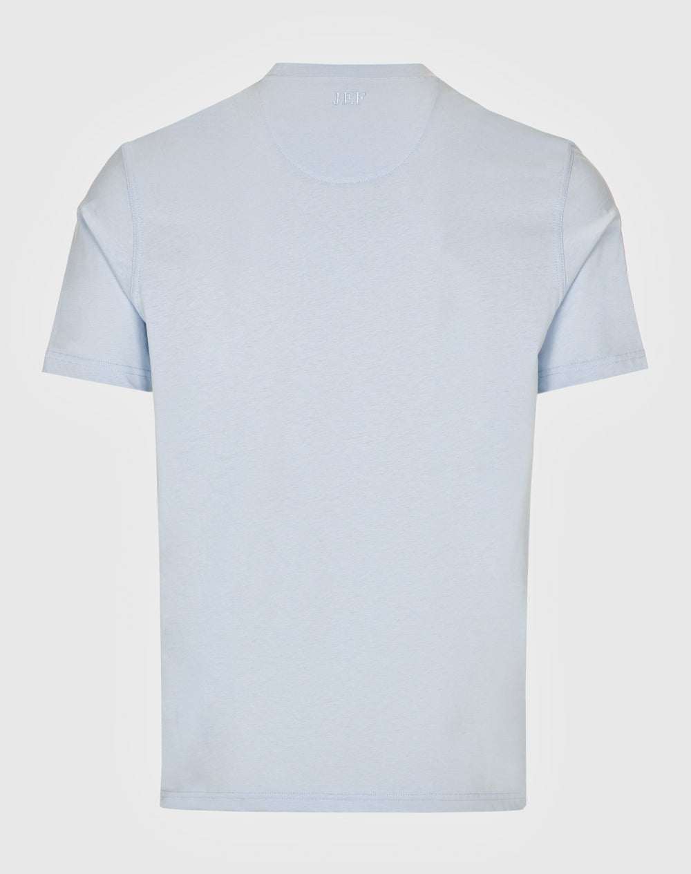 T-shirt em jersey orgânico com decote redondo. Logótipo da marca bordado com cores da marca na frente. Meia-lua nas costas na própria malha com bordado JEF à cor da peça.