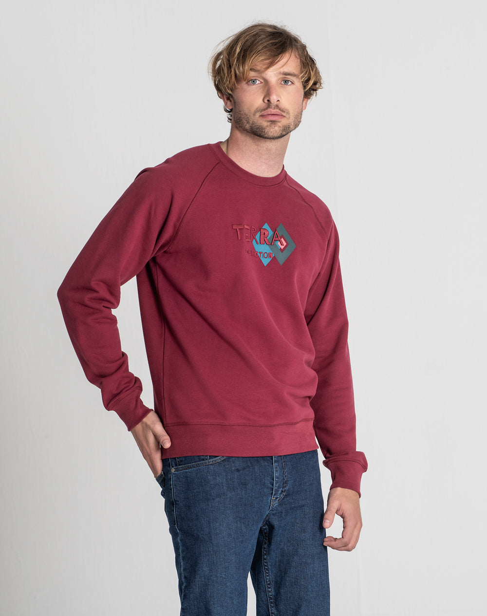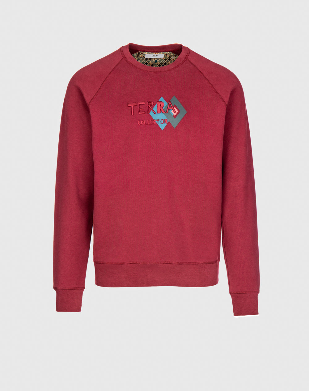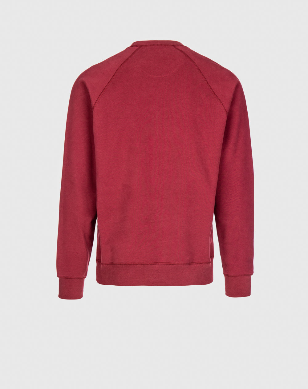 Sweatshirt com manga raglan. Desenho estampado e bordado na frente. Cavas e gola com recobrimento de 3 agulhas. Meia-lua em tecido estampado do all-over alusivo ao conceito da coleção 100% algodão orgânico.