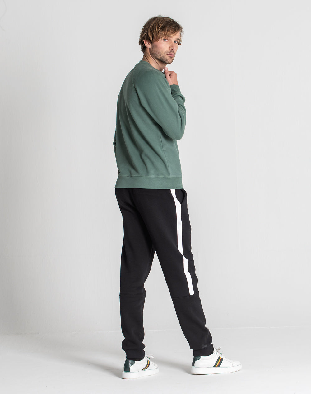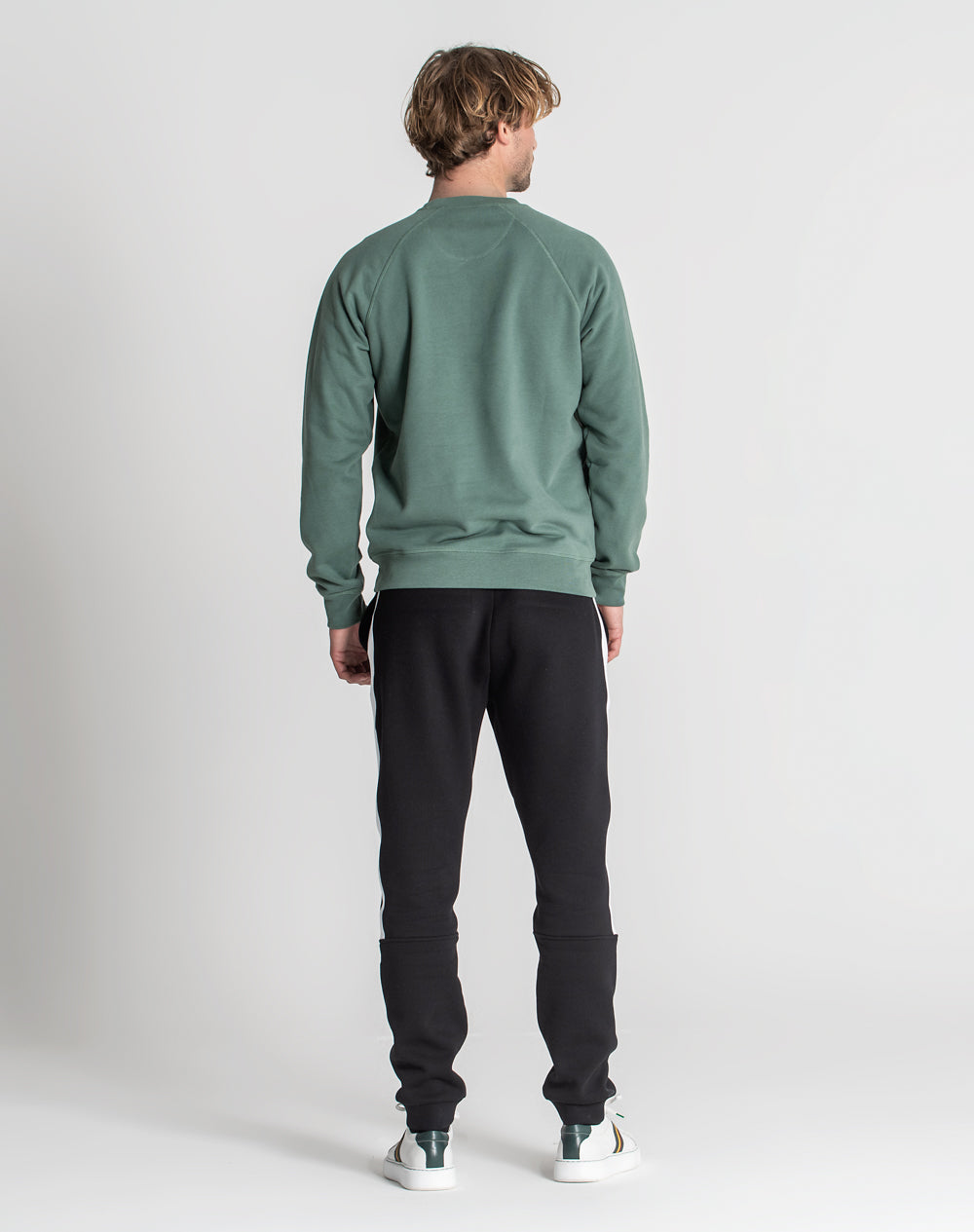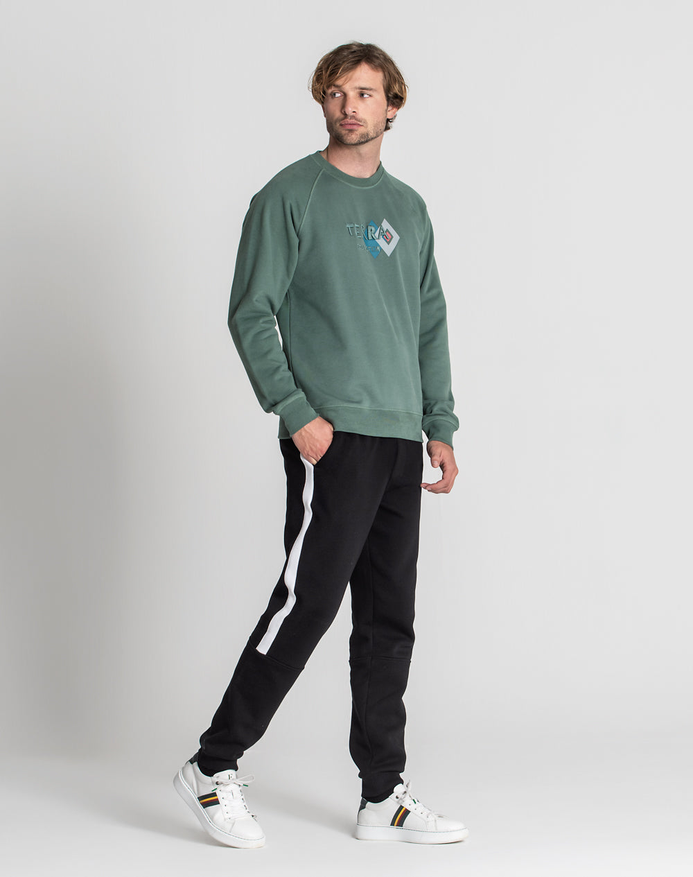 Sweatshirt com manga raglan. Desenho estampado e bordado na frente. Cavas e gola com recobrimento de 3 agulhas. Meia-lua em tecido estampado do all-over alusivo ao conceito da coleção 100% algodão orgânico.