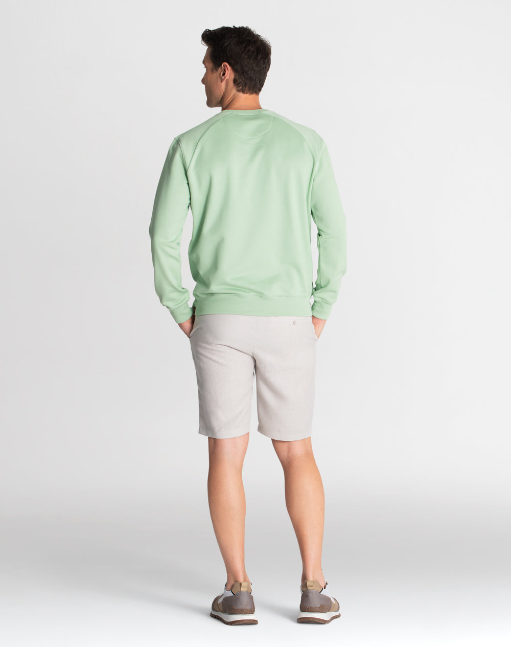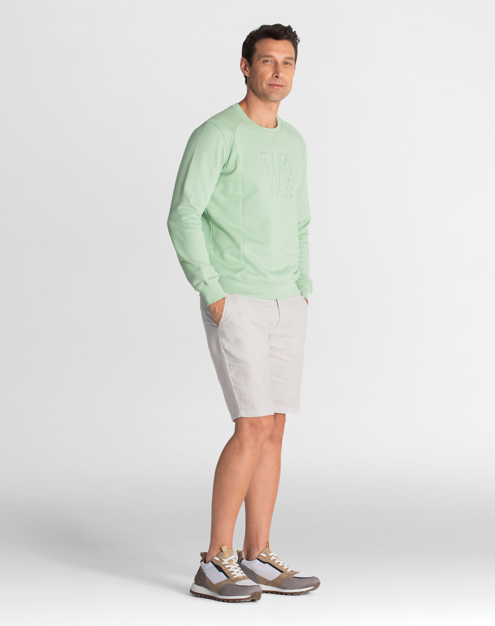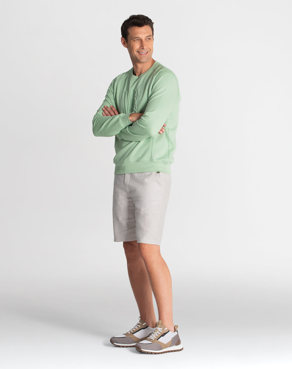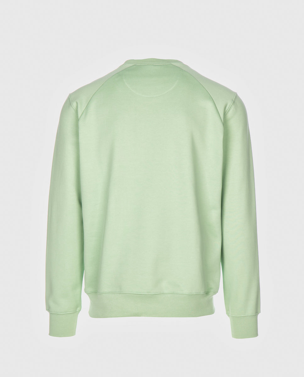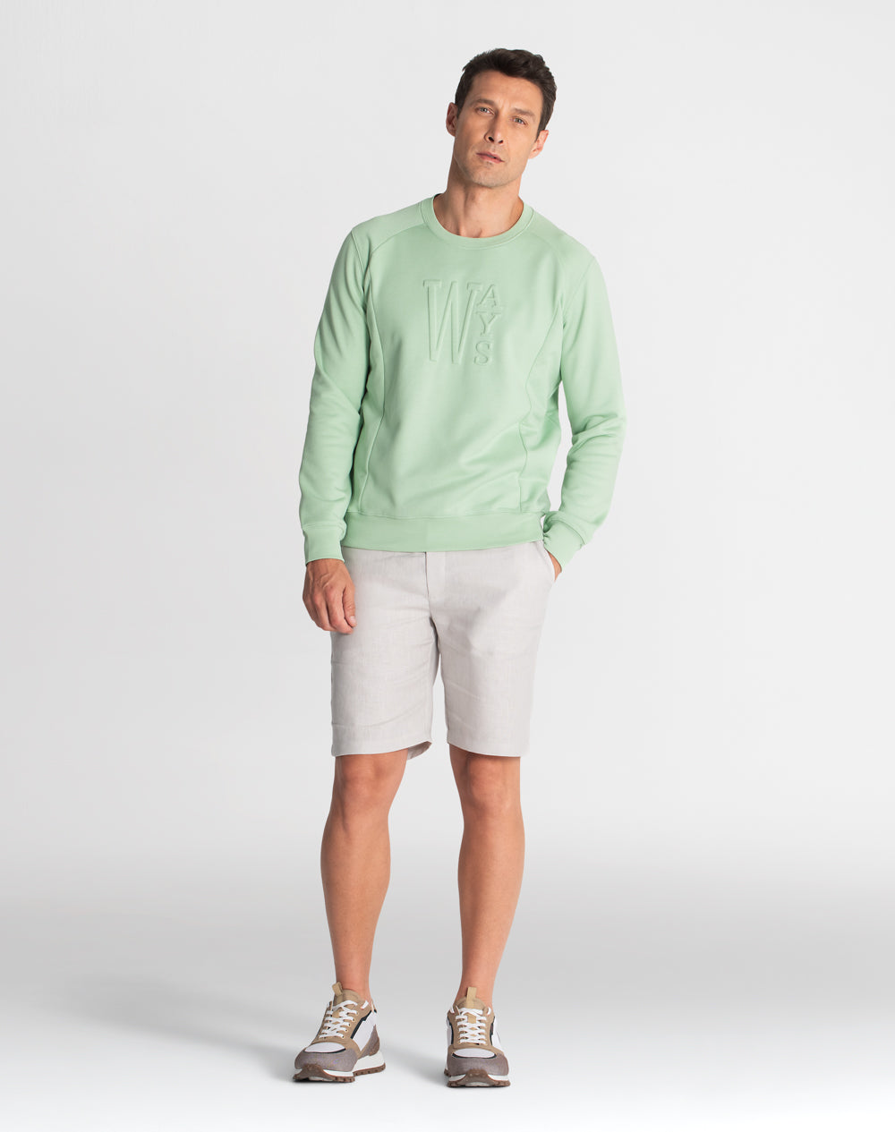 Sweat com manga normal. Encaixes na frente e costas. Estampado WAYS. Meia-lua em tecido estampado (popelina orgânica com acabamento seda) alusivo ao conceito da coleção.