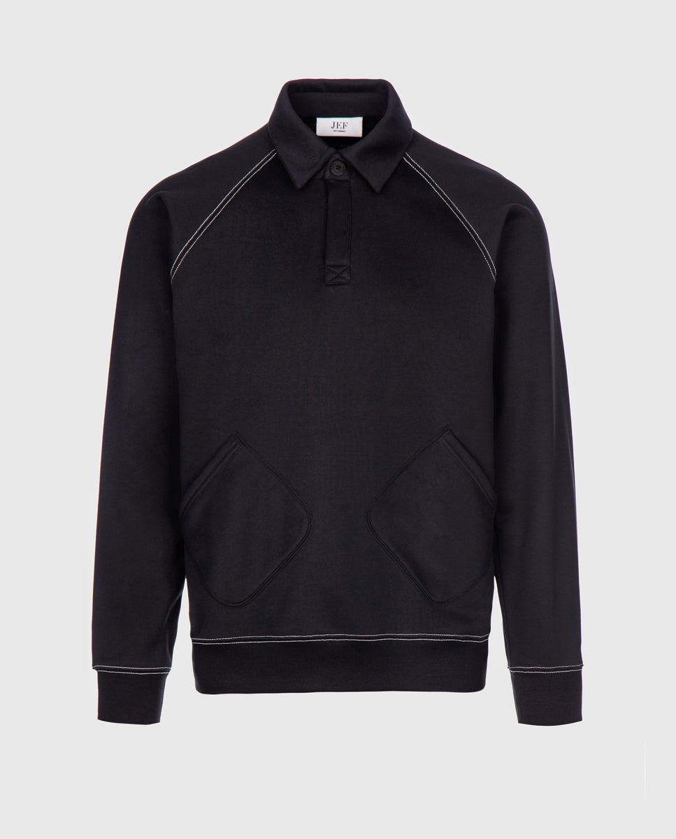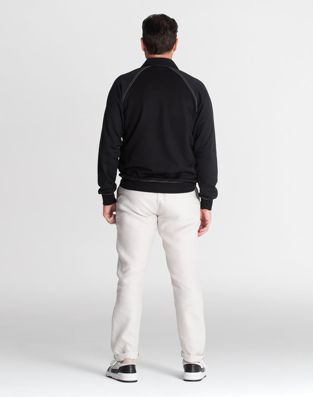 Punhos e cinto em rib. Logótipo da marca bordado à cor da peça. Tapa-costuras com cores da marca.