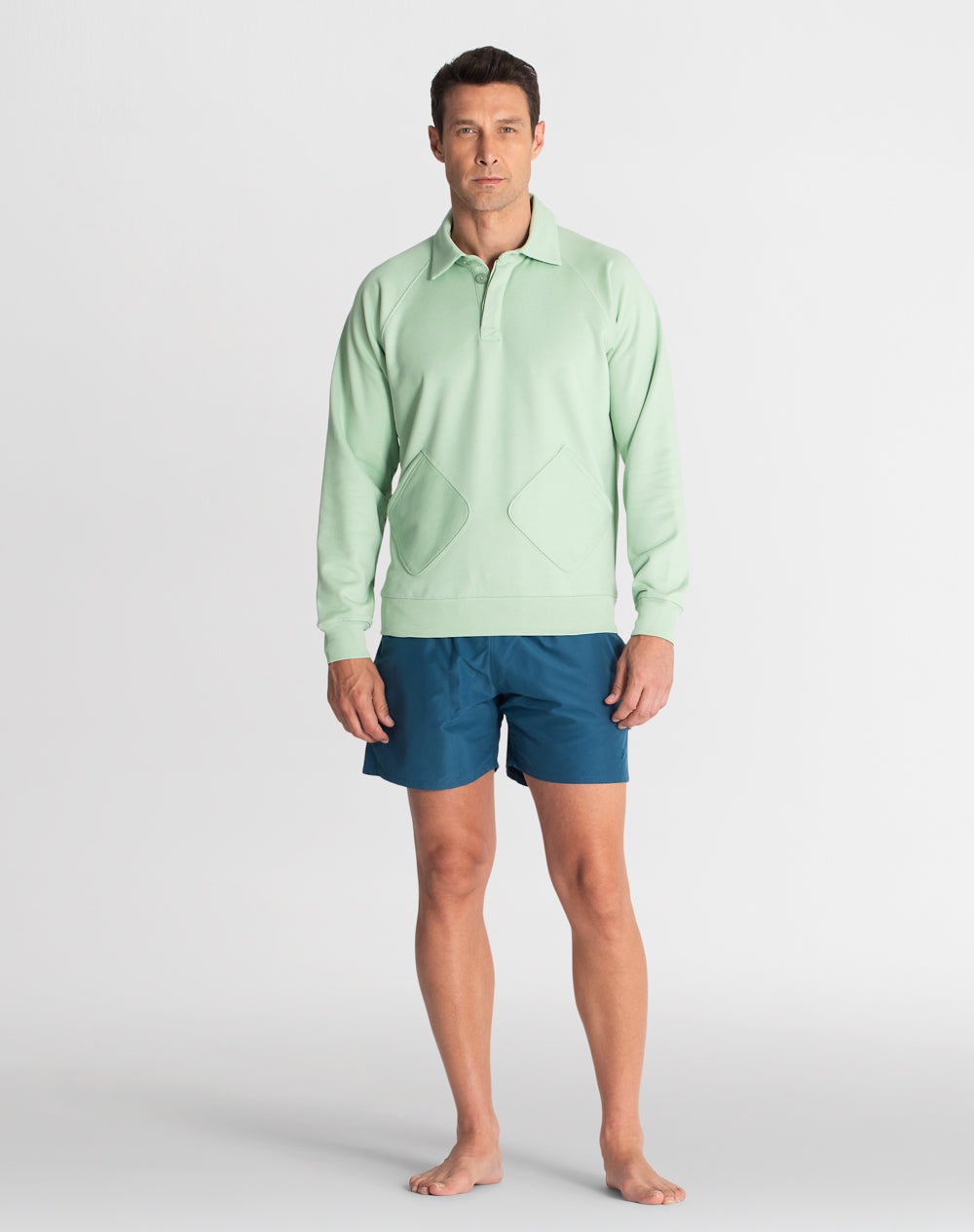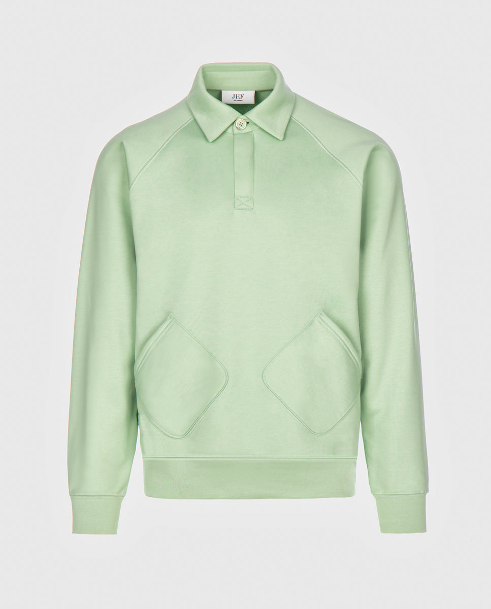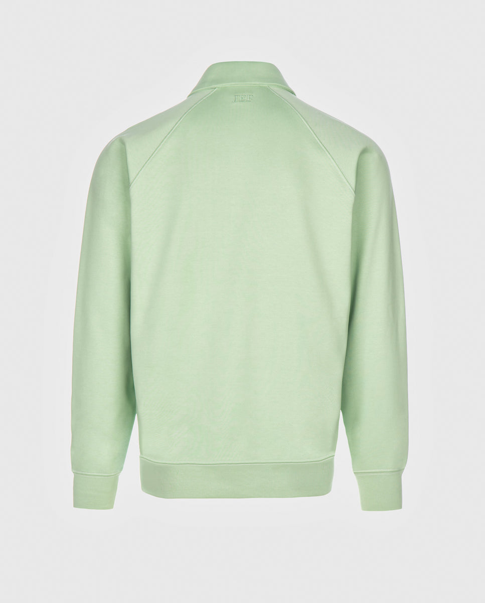 Punhos e cinto em rib. Logótipo da marca bordado à cor da peça. Tapa-costuras com cores da marca.