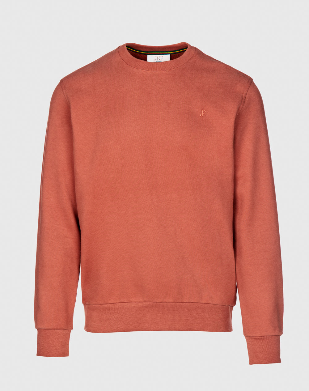 Sweatshirt básica de decote redondo. Manga normal. Logótipo bordado à cor da peça. Tapa-costuras através de fita de nastro com as cores da marca.