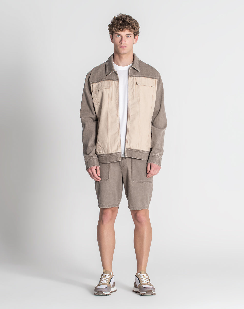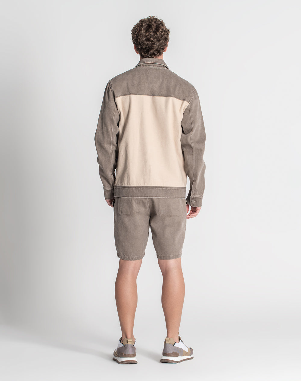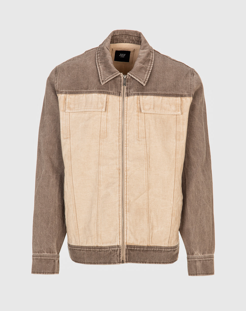 Casaco estilo trucker em denim 100% algodão orgânico. Estilo regular fit. Bolsos de pala. Abertura no meio frente através de fecho metálico. Bolsos de vivo nas laterais. Etiqueta JEF preta na vertical pregada na lateral. Interior da peça com costuras avivadas em tecido estampado.
