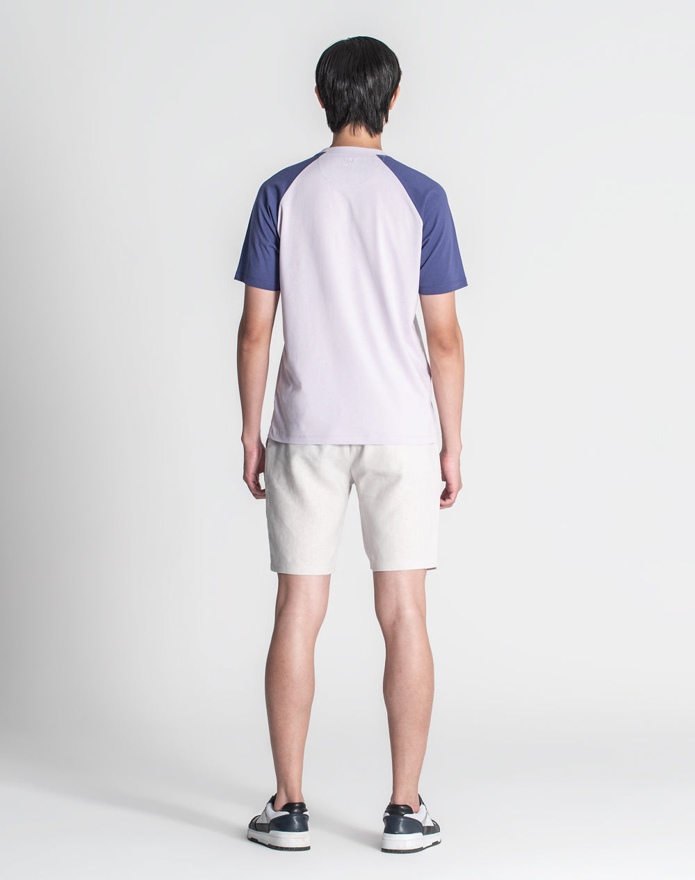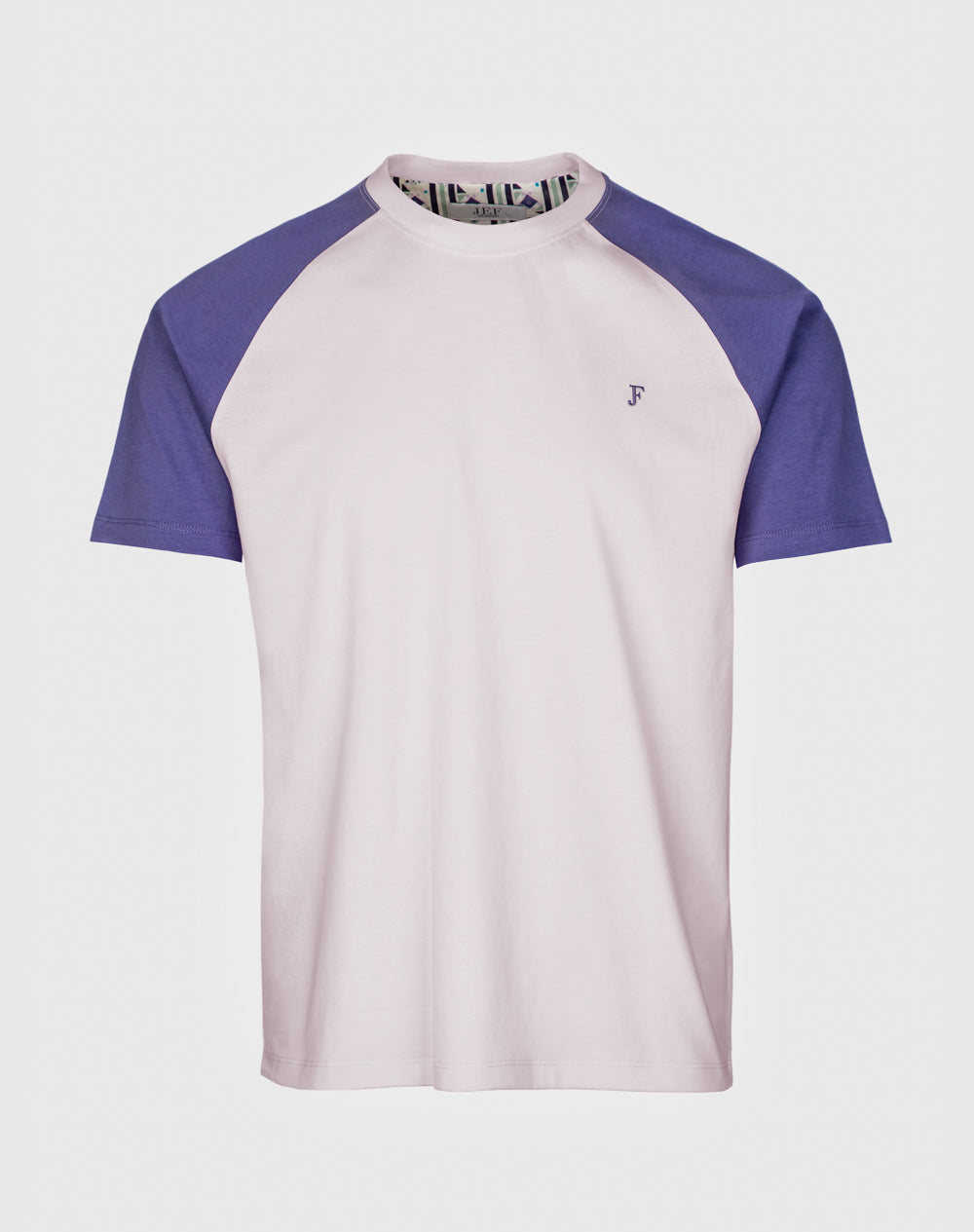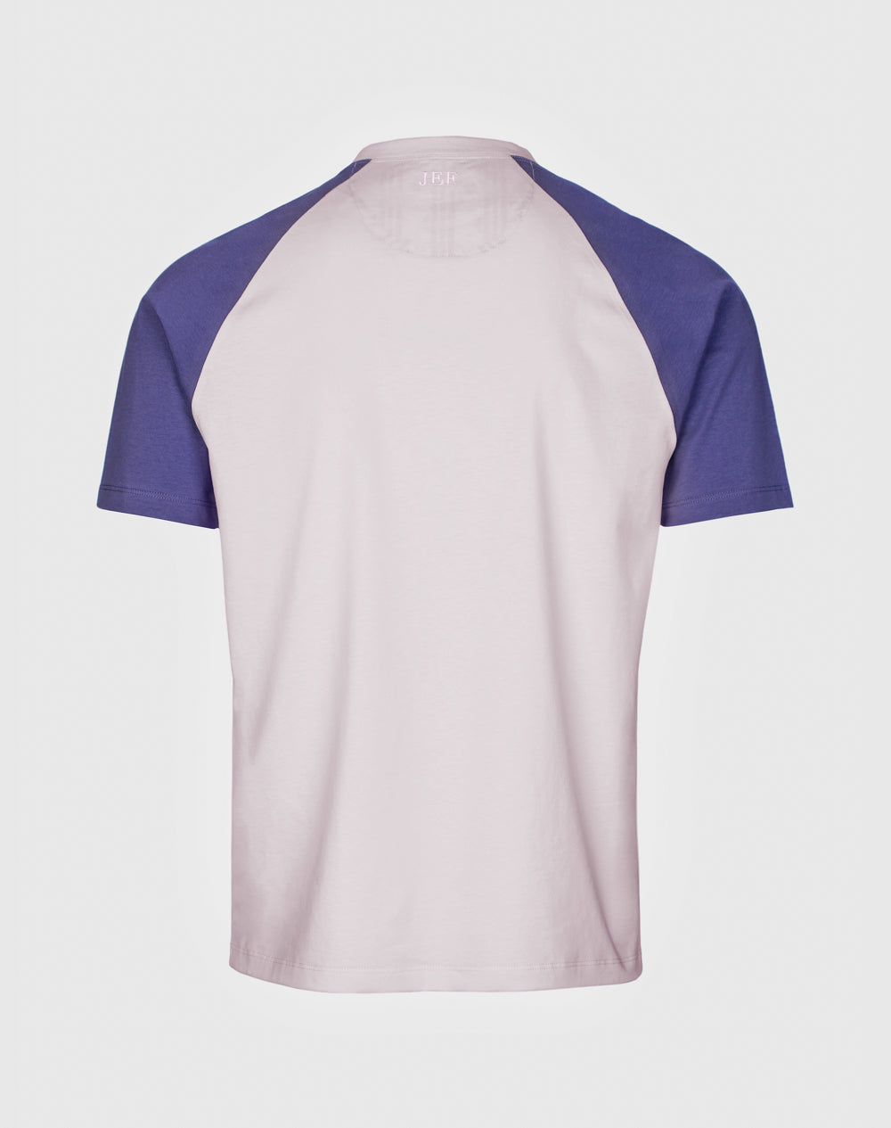 T-shirt em algodão regenagri com decote redondo. Manga raglan a contrastar com restante peça. Logótipo ícon da marca na frente bordado na cor de contraste. Meia-lua em tecido estampado alusivo ao tema da coleção. Logótipo JEF bordado nas costas à cor da peça.