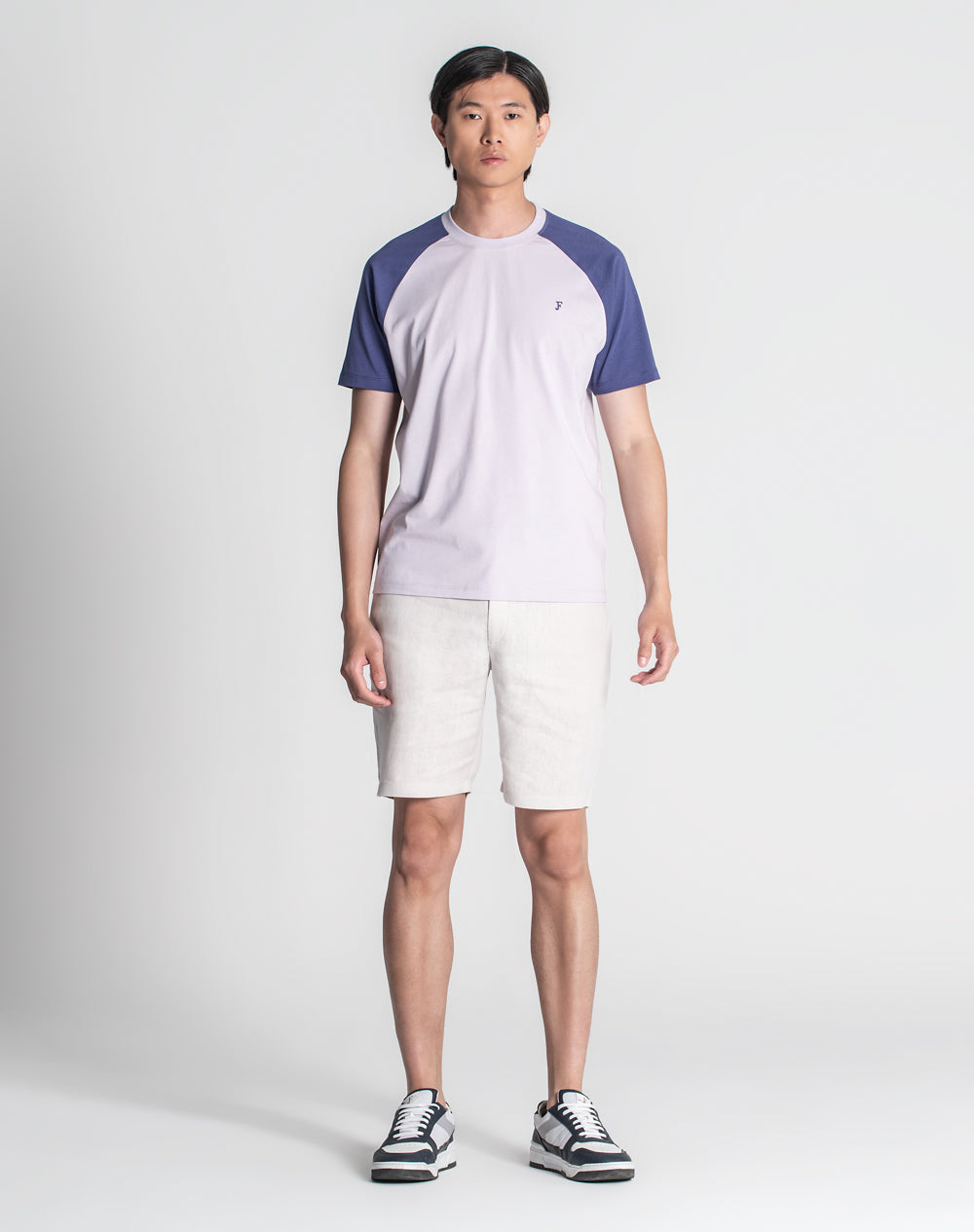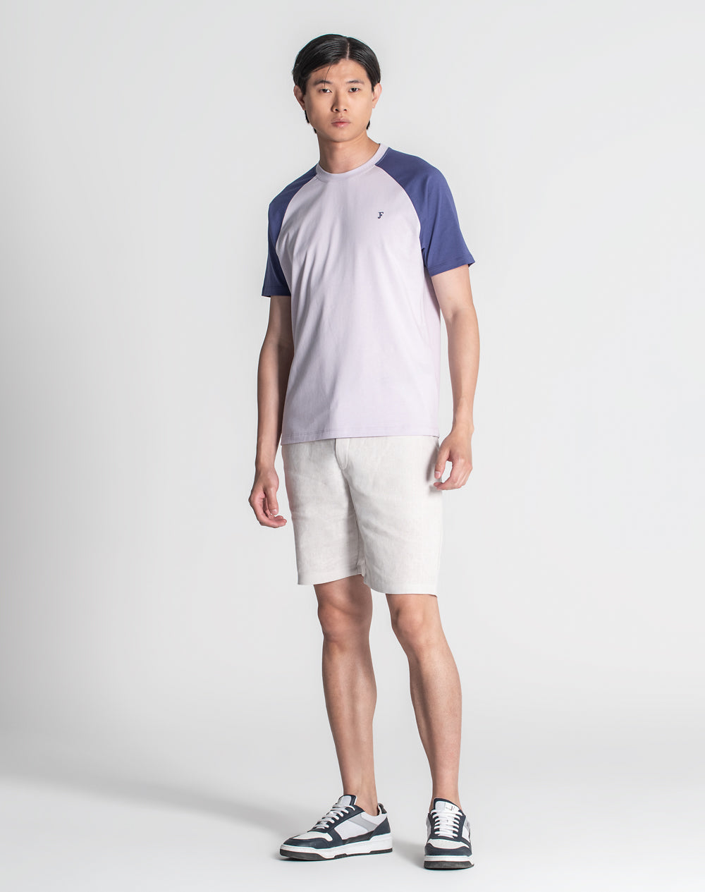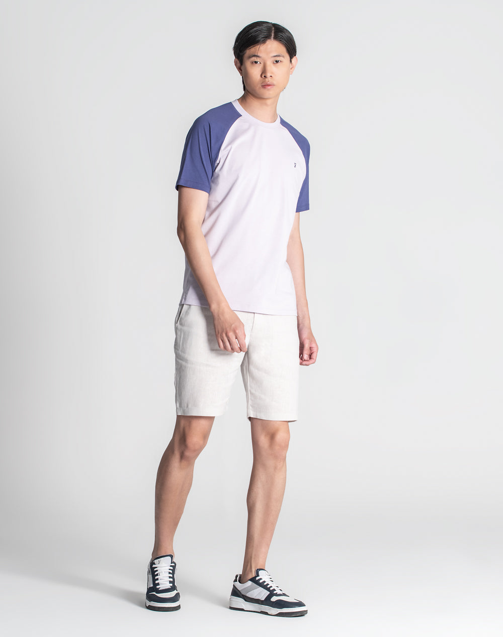 T-shirt em algodão regenagri com decote redondo. Manga raglan a contrastar com restante peça. Logótipo ícon da marca na frente bordado na cor de contraste. Meia-lua em tecido estampado alusivo ao tema da coleção. Logótipo JEF bordado nas costas à cor da peça.