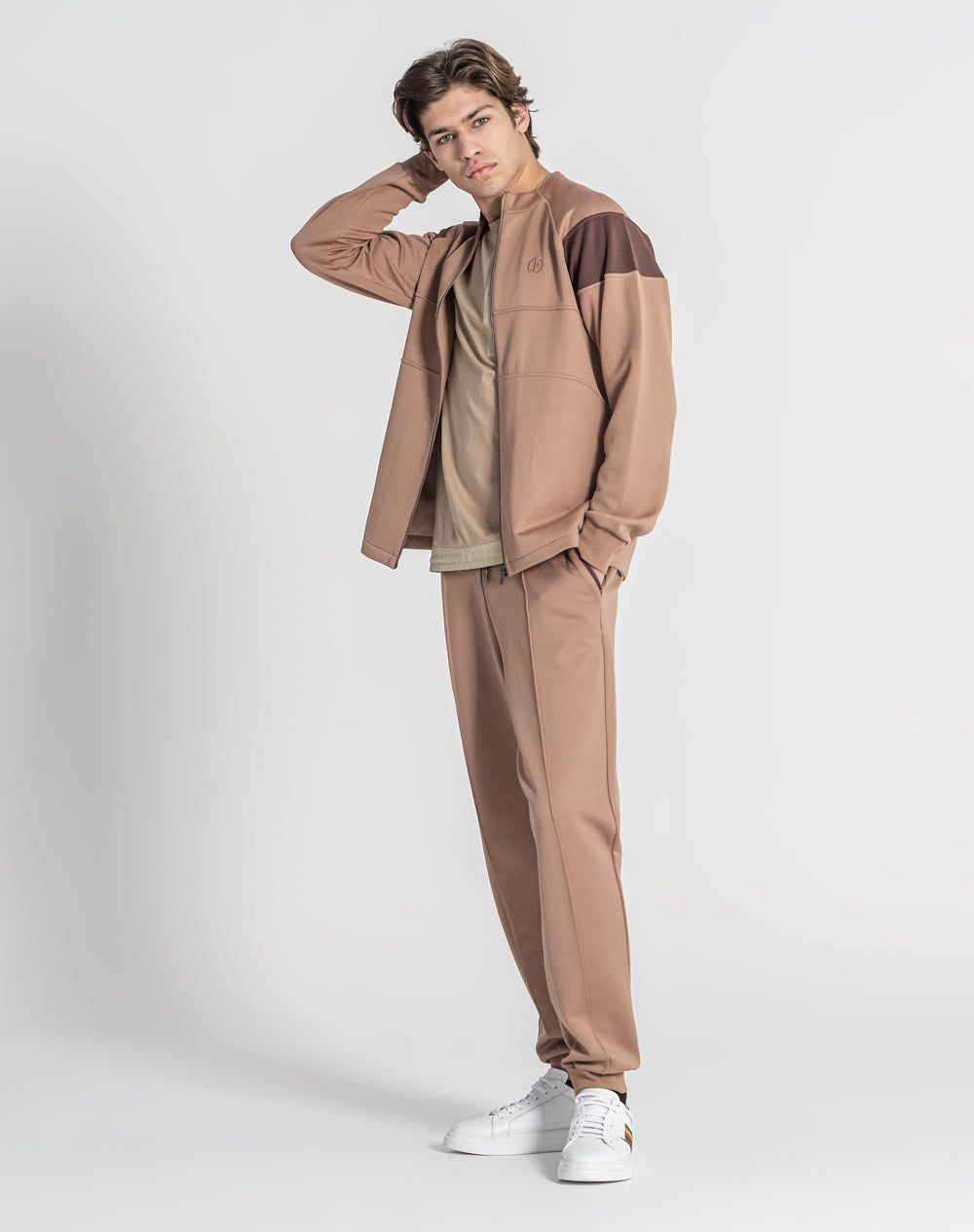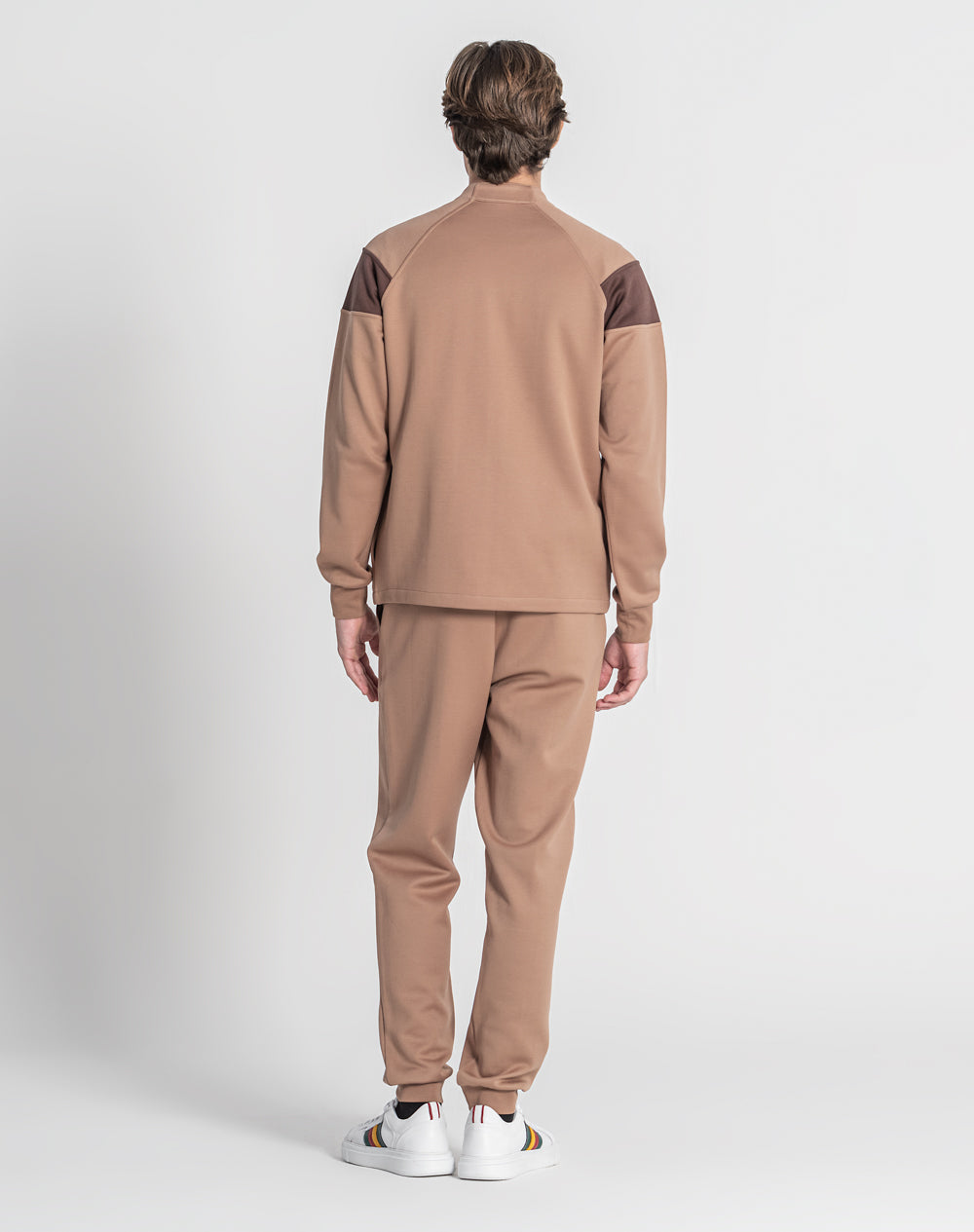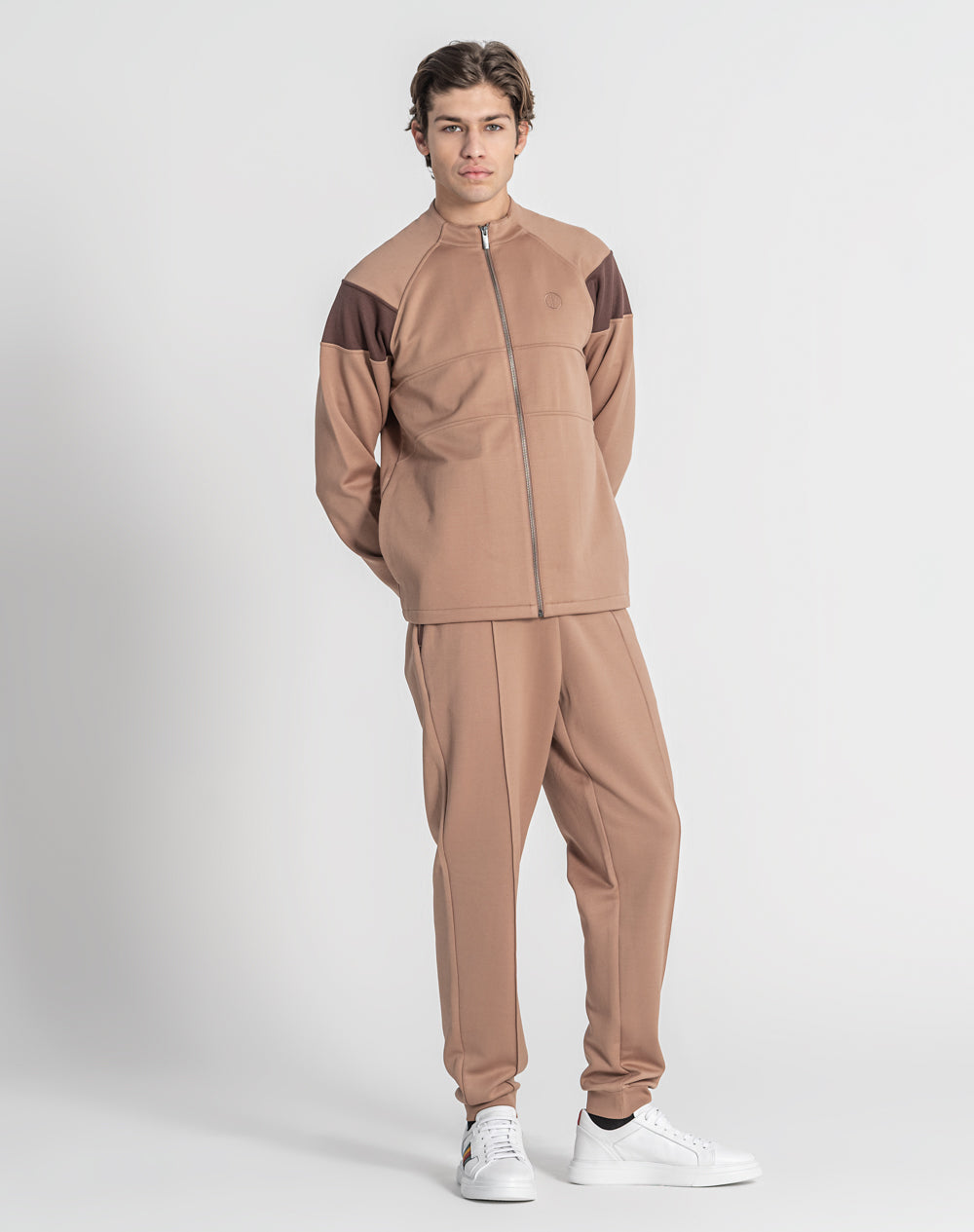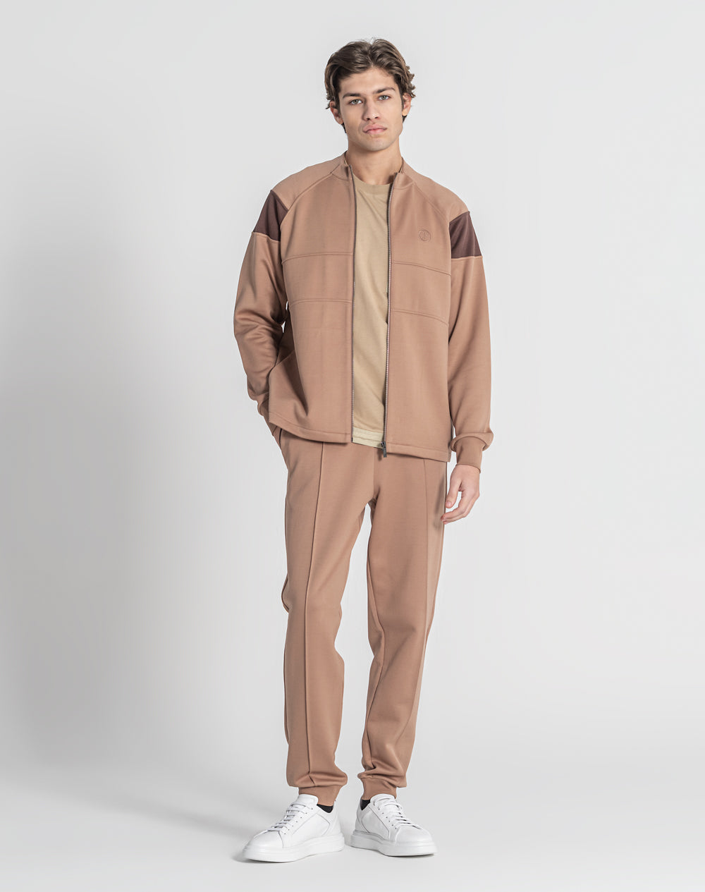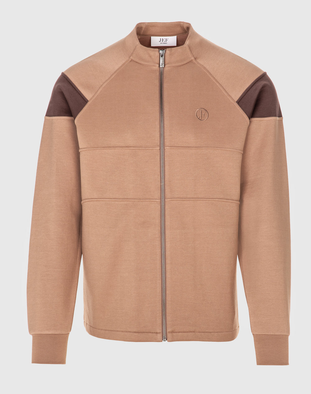 Casaco gola alta com manga raglan. Bolsos laterais metidos na costura. Abertura através de fecho. Logótipo da marca bordado à cor da peça.