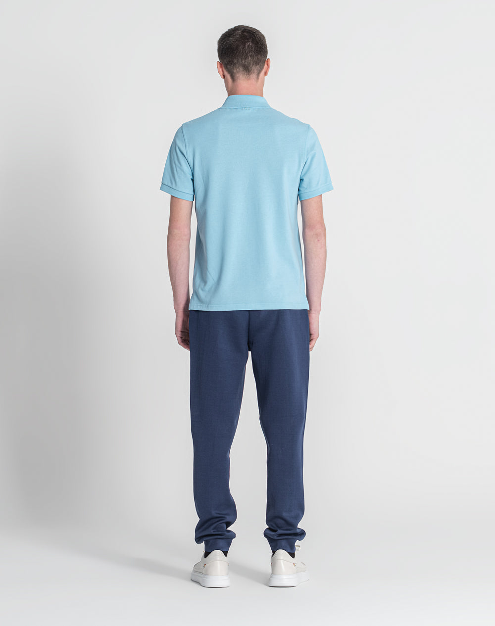 Polo manga curta em algodão orgânico. Abotoado por 3 botões no meio frente. Tapa-costuras no interior da peça através de fita de nastro à cor da peça. Logótipo ícon bordado com as cores da marca. Logótipo JEF bordado à cor da peça nas costas. Pequenas rachas nas laterais.