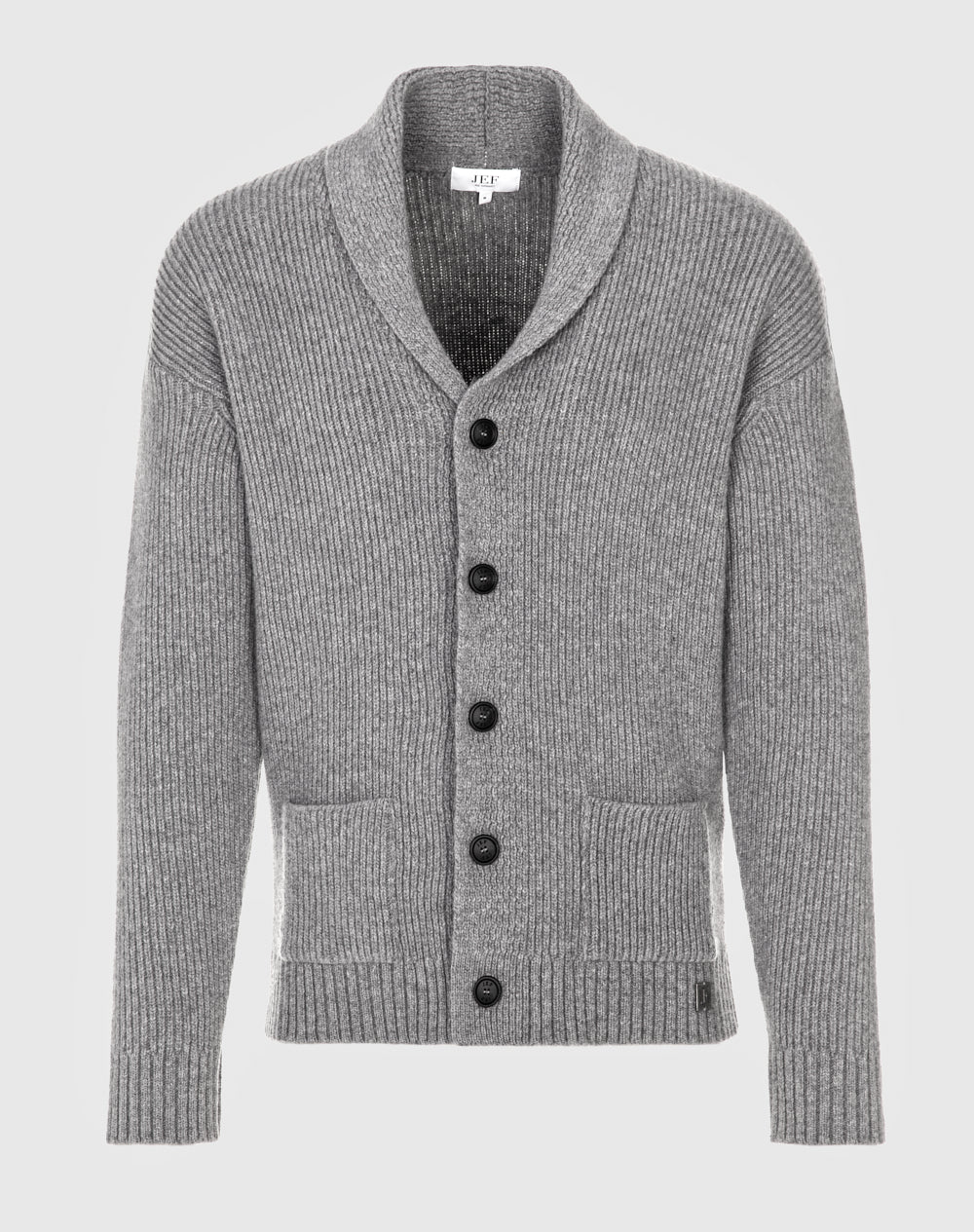 Cardigan em malha tricotada com gola dobrada. Cavas ligeiramente descidas. Bolsos de chapa nas laterais. Medalha com logótipo da marca.