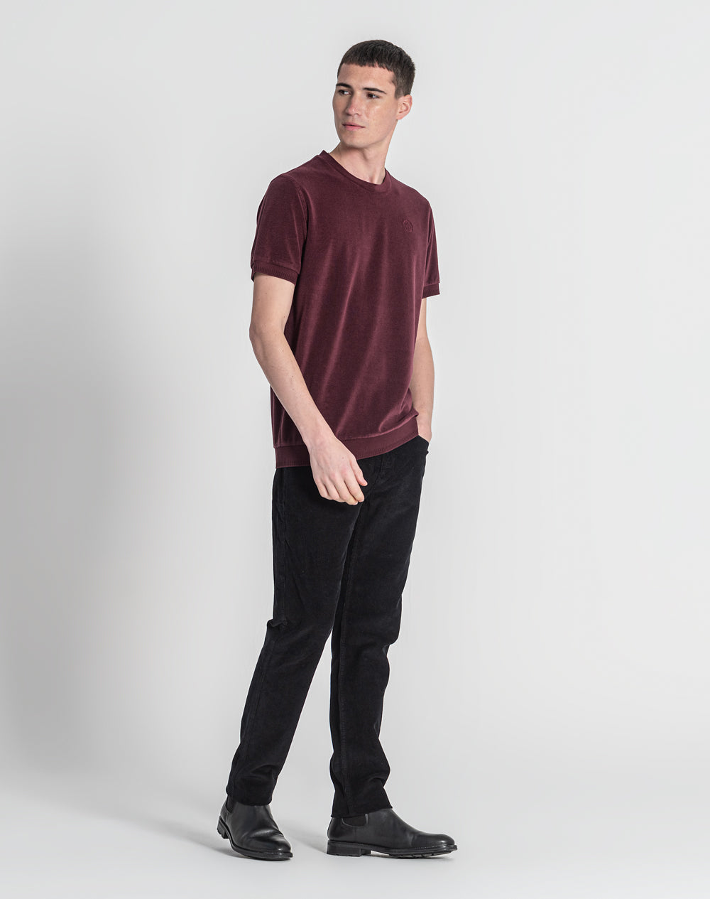 T-shirt em algodão PGM e algodão orgânico. Logótipo da marca bordado à cor da peça. Cinto e punhos em tira-reta. Logótipo JEF bordado nas costas à cor da peça. Meia-lua na própria malha.