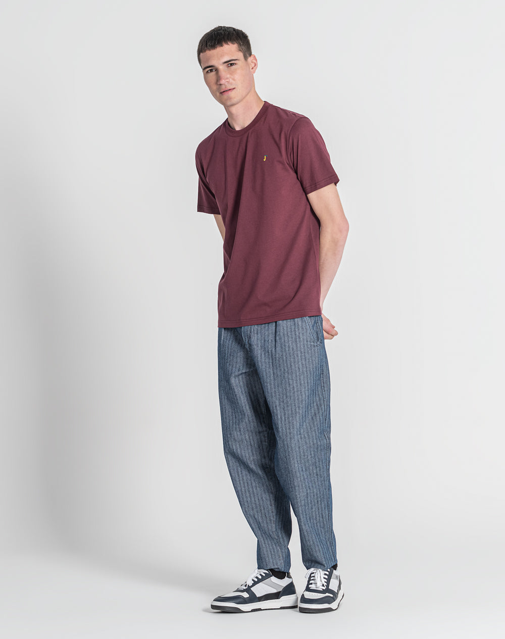 T-shirt em jersey orgânico com decote redondo. Meia-lua na própria malha. Logótipo do ícon bordado com cores da marca. Logótipo JEF bordado nas costas à cor da peça.