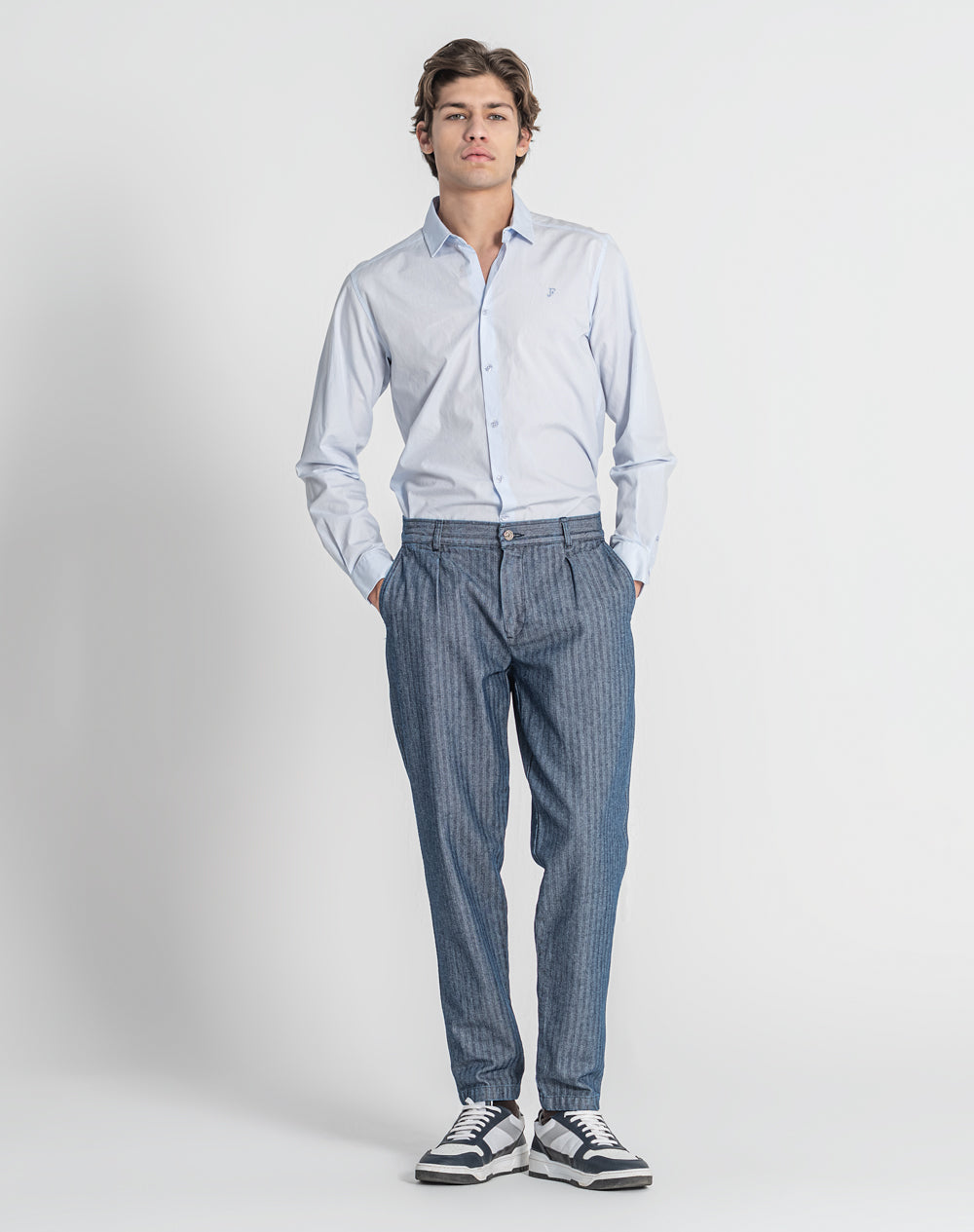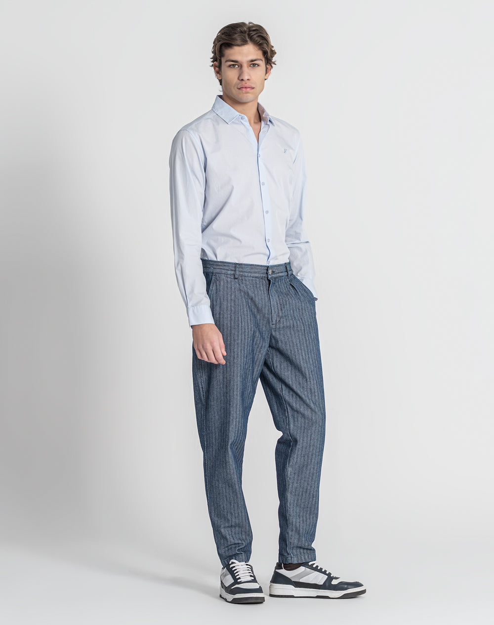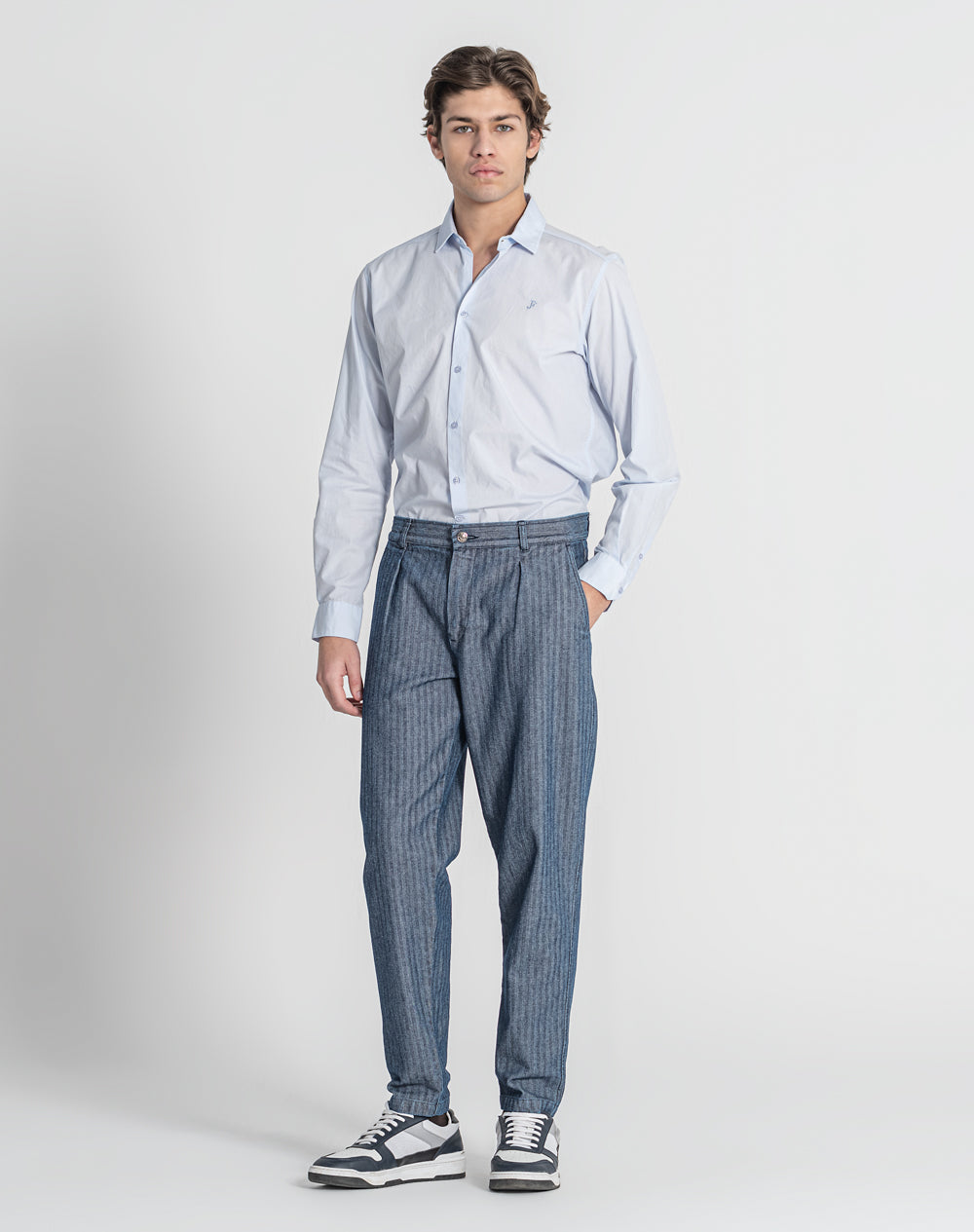 Camisa em algodão orgânico, fit regular com malhete simples. Punhos quebrados. Logótipo bordado à cor da peça.