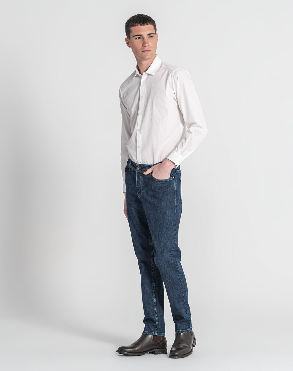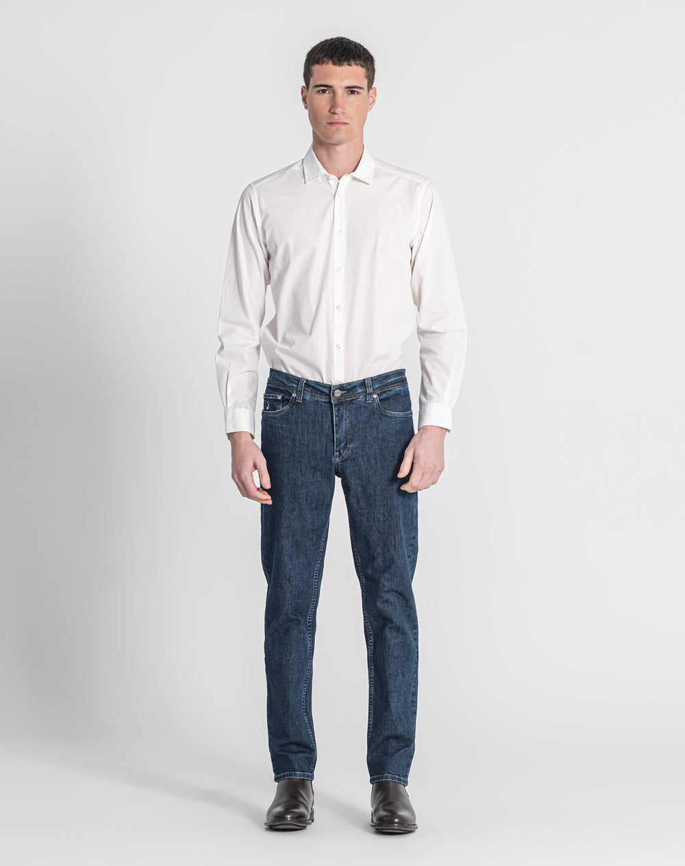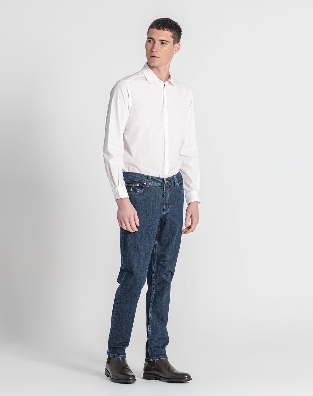 Camisa em algodão orgânico, fit regular com malhete simples. Punhos quebrados. Logótipo bordado à cor da peça.