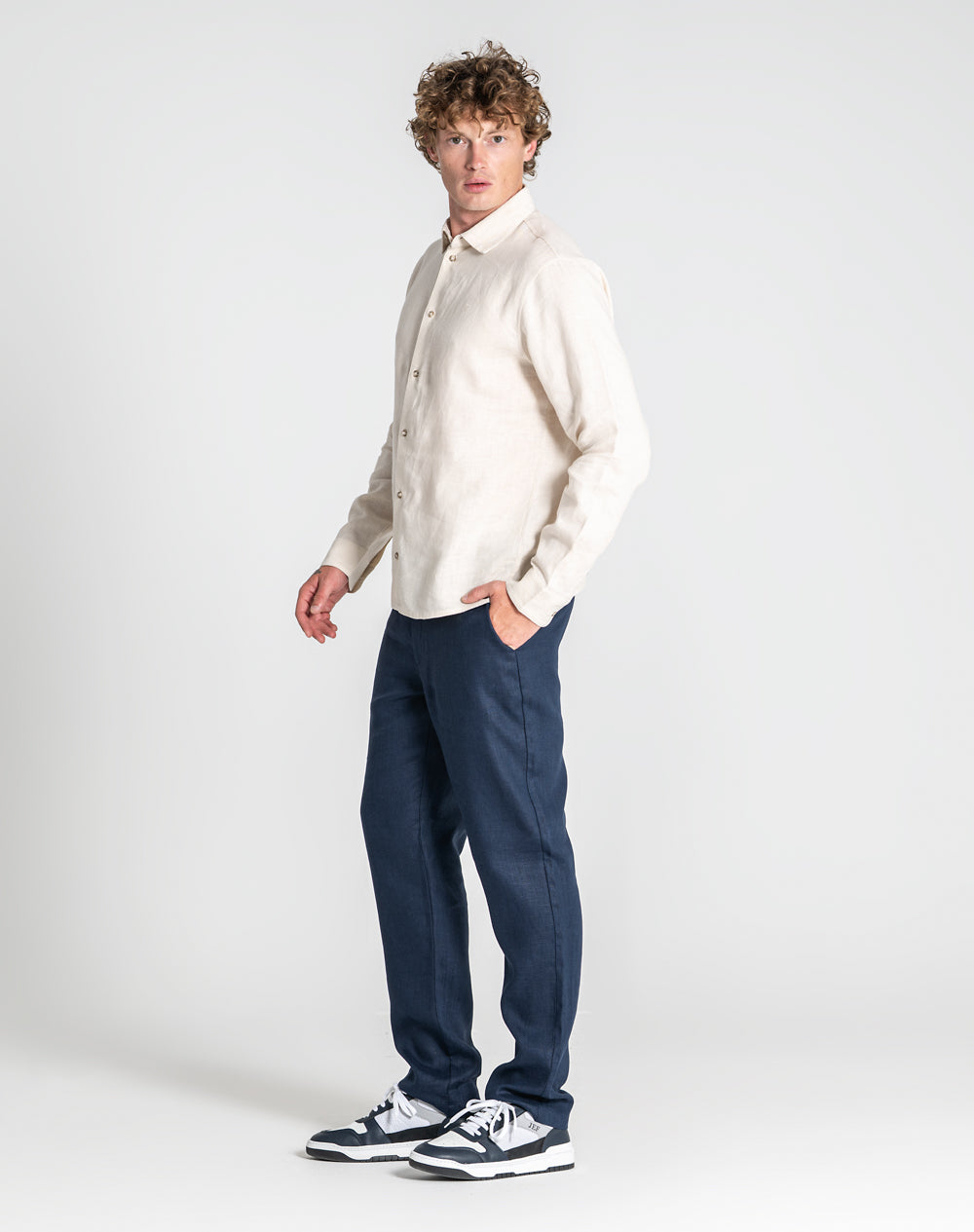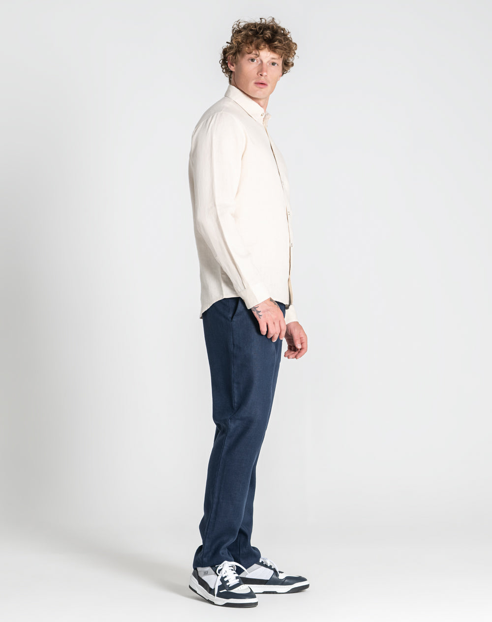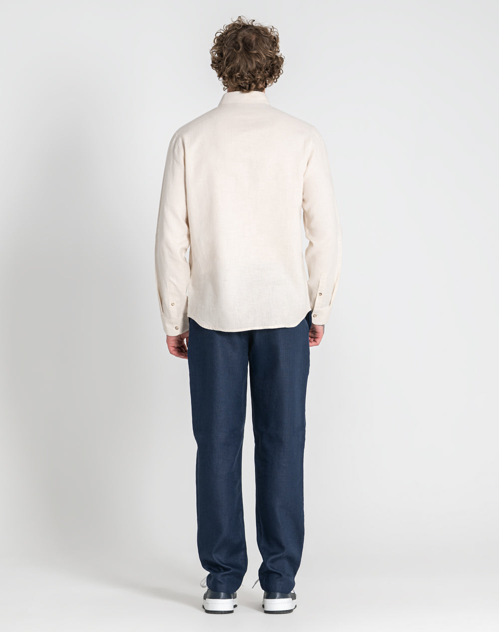 Camisa descontraída de linho. Logótipo bordado à cor da peça.