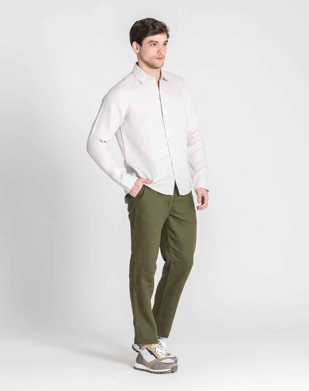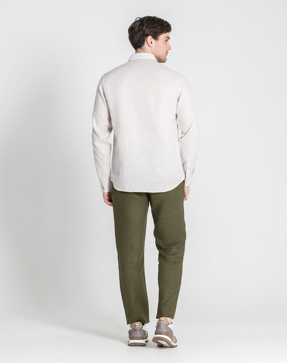 Camisa descontraída de linho. Logótipo bordado à cor da peça.