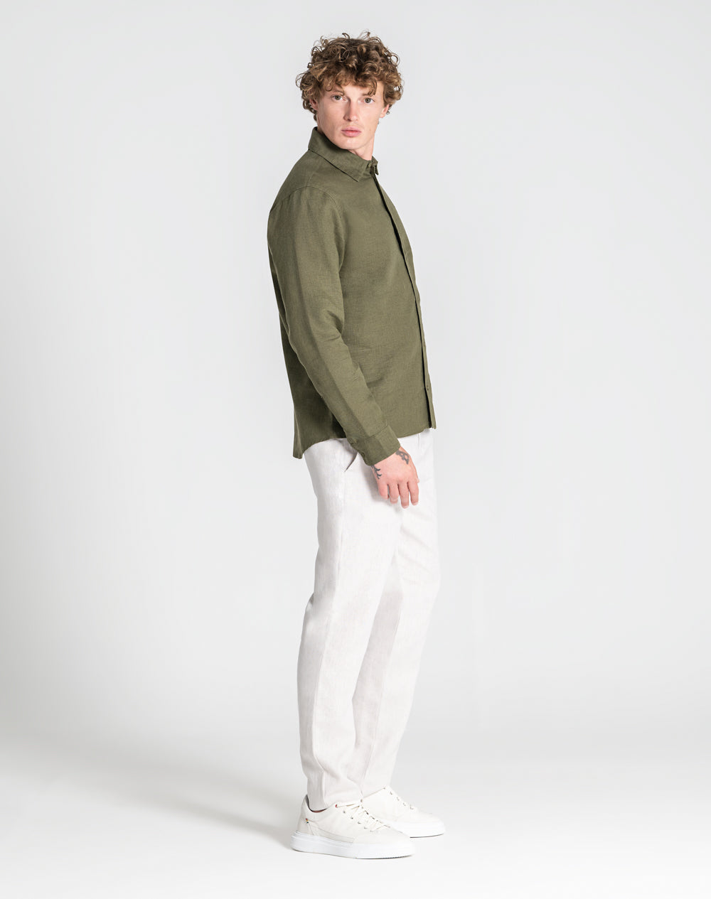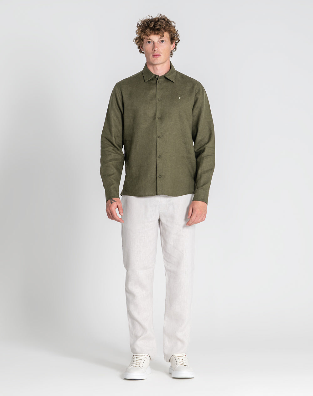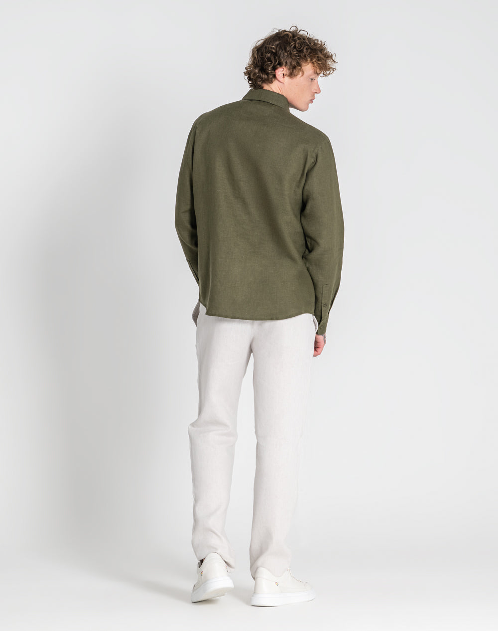 Camisa descontraída de linho. Logótipo bordado à cor da peça.