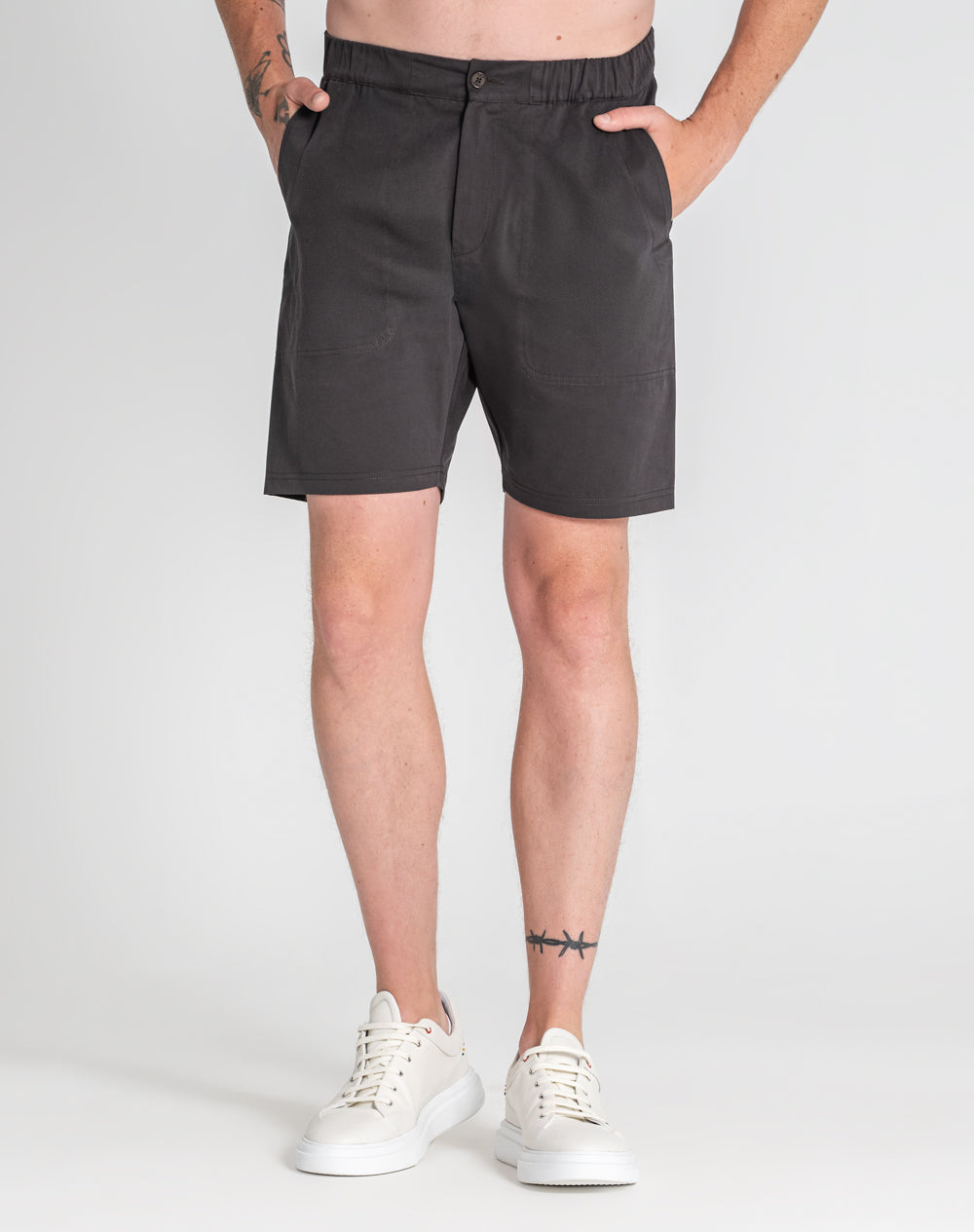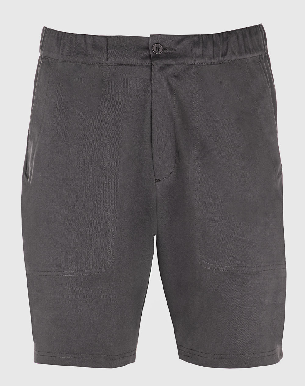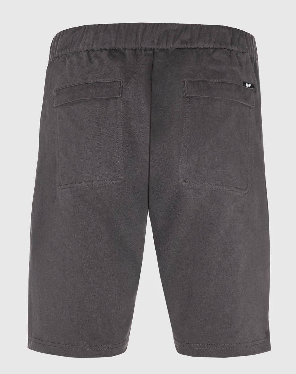 Calção estilo utilitário em sarja. Cinto com elástico e botão. Na frente bolsos de faca e nas costas bolsos de vivo. Estilo 4 bolsos. Etiqueta preta JEF na horizontal por cima do bolso nas costas.
