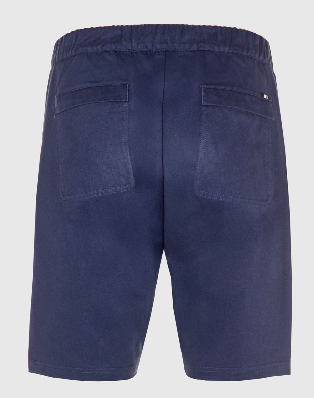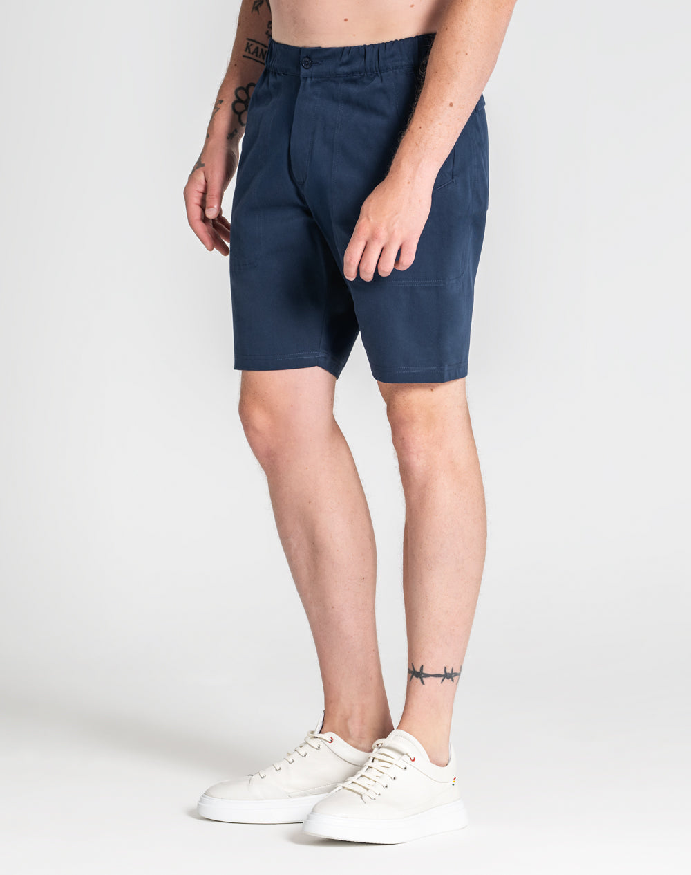 Calção estilo utilitário em sarja. Cinto com elástico e botão. Na frente bolsos de faca e nas costas bolsos de vivo. Estilo 4 bolsos. Etiqueta preta JEF na horizontal por cima do bolso nas costas.