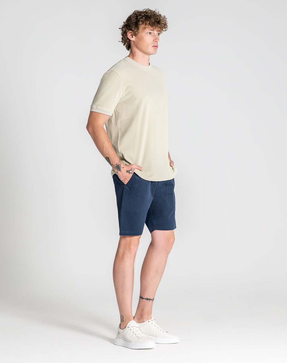 Disponível em: navy blue, stone grey e aura blue.