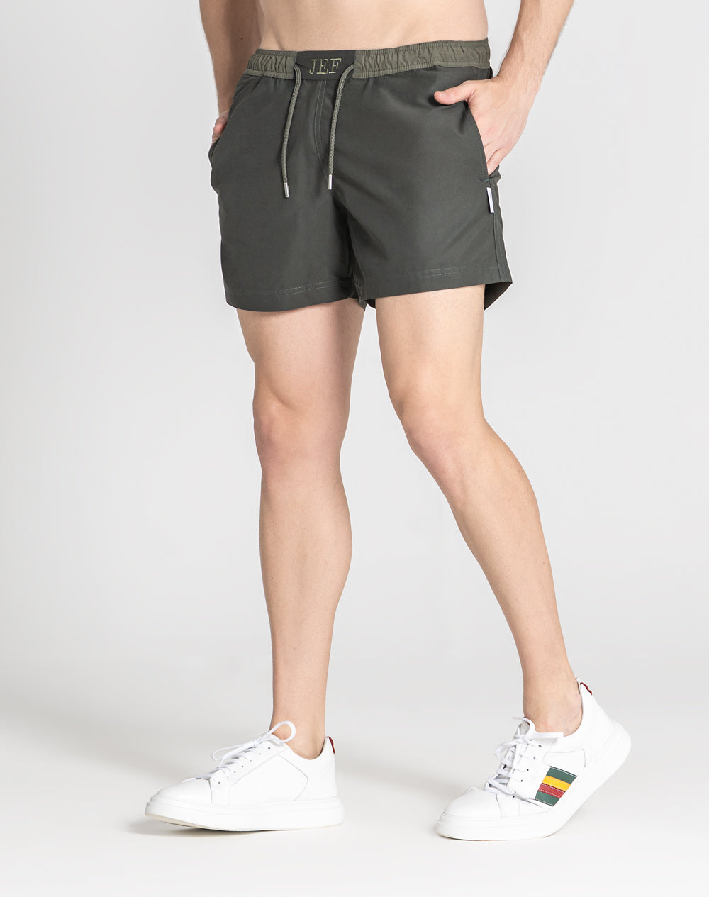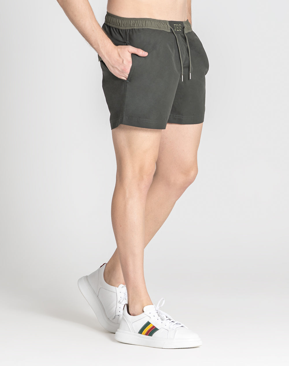 Calção de banho sustentável com elástico no cinto e cordão para melhor ajuste. Bolsos metidos nas costuras laterais. Bolso de pala nas costas. Interior forrado com rede para melhor conforto. Etiqueta SEAQUAL na lateral metida na costura. O que é Seaqual? É tecido reciclado feito de plásticos retirados do oceano.