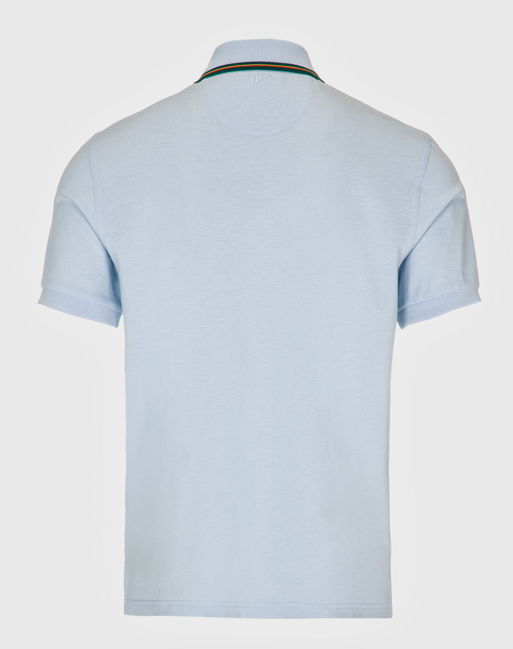 Polo manga curta em algodão. Gola com riscas das cores da marca. Logótipo ícone da marca bordado à cor da peça na frente. Abotoado por 3 botões no meio frente. Meia-lua na própria malha com logótipo JEF bordado nas costas à cor da peça. Pequenas rachas nas laterais.