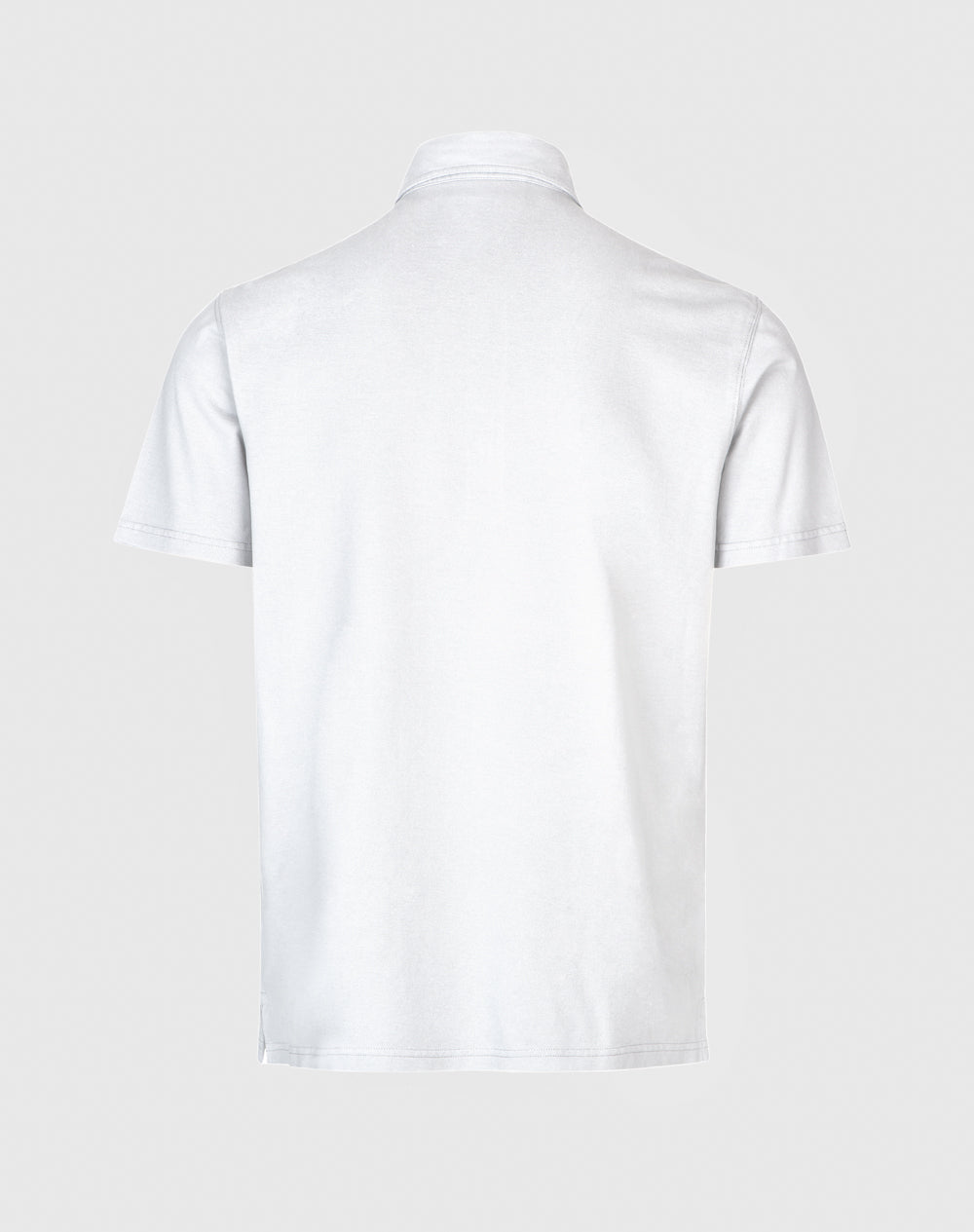 Polo de manga curta em jersey piquet. Gola na própria malha. Logótipo da marca bordado à cor da peça. Tapa-costuras no interior da peça com cores da marca. Pequenas rachas laterais.