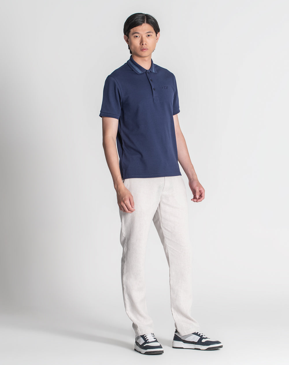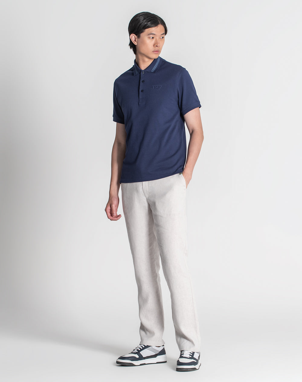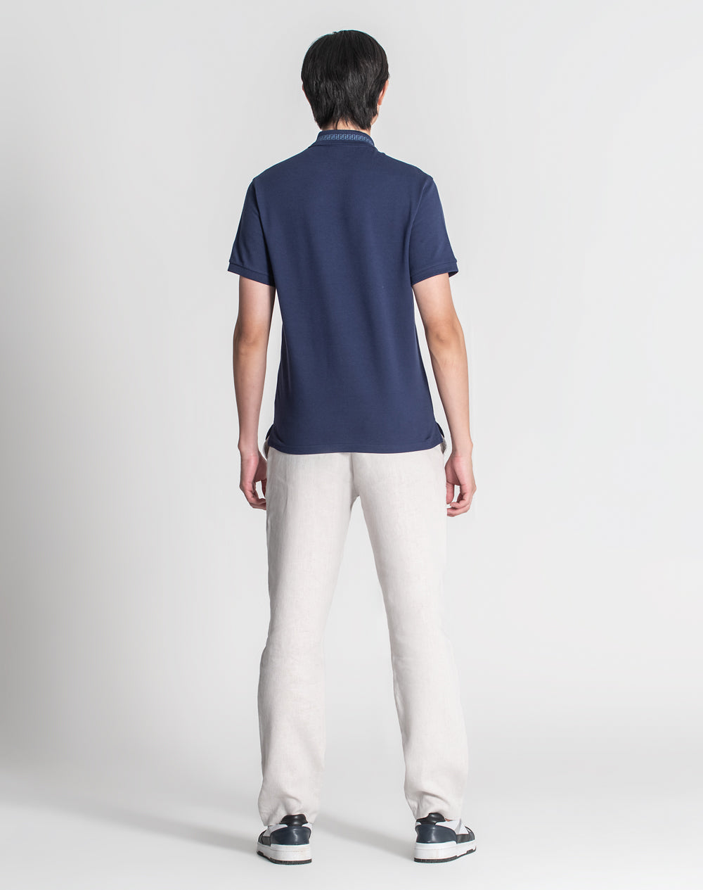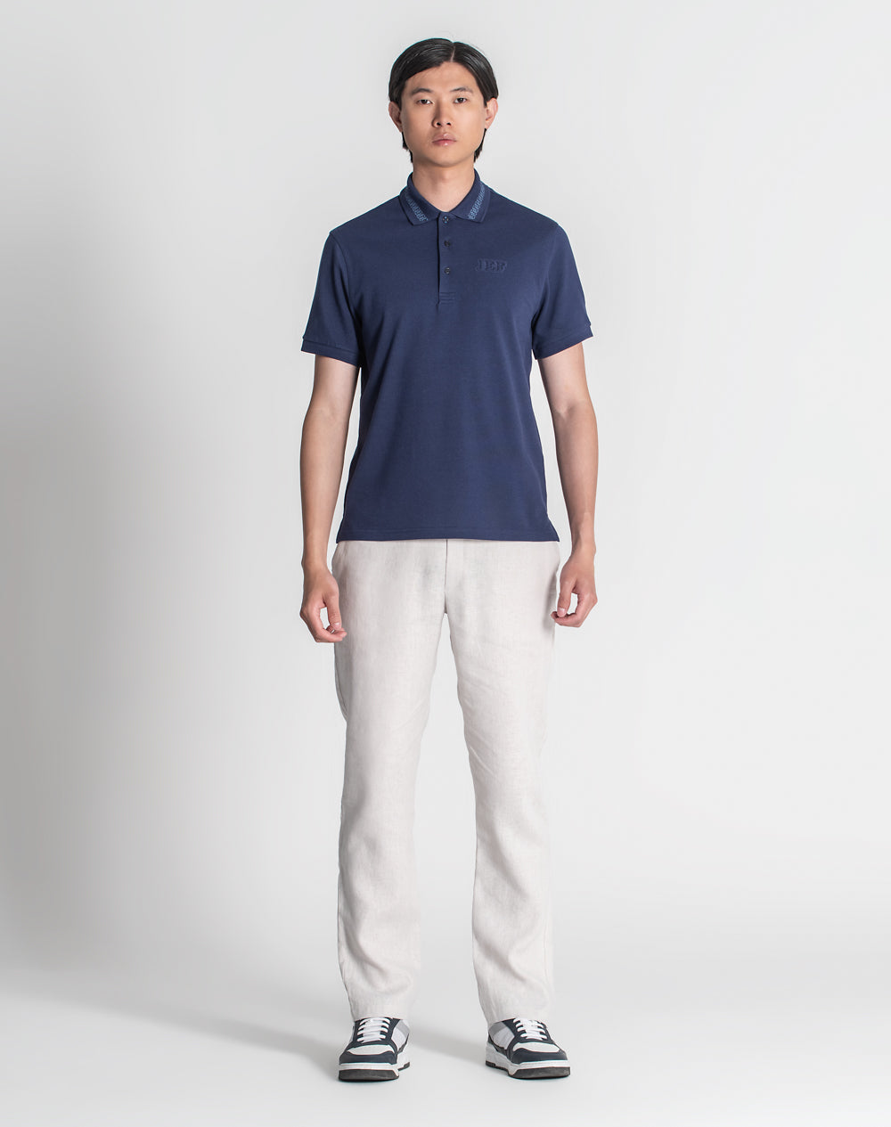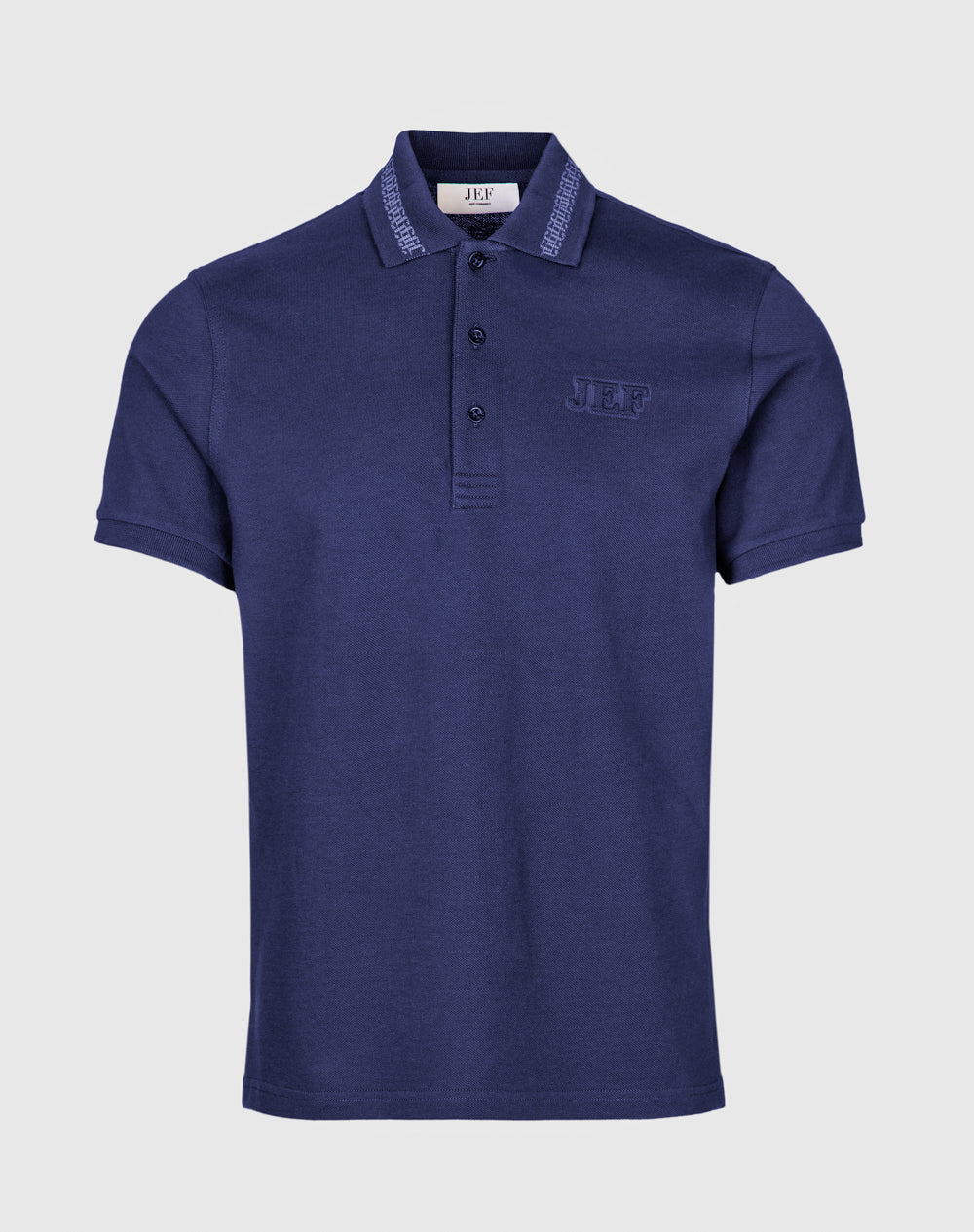 Polo manga curta em algodão. Logótipo JEF através da técnica embossed 3D na frente. Abotoado por 3 botões no meio frente. Pequenas rachas nas laterais.