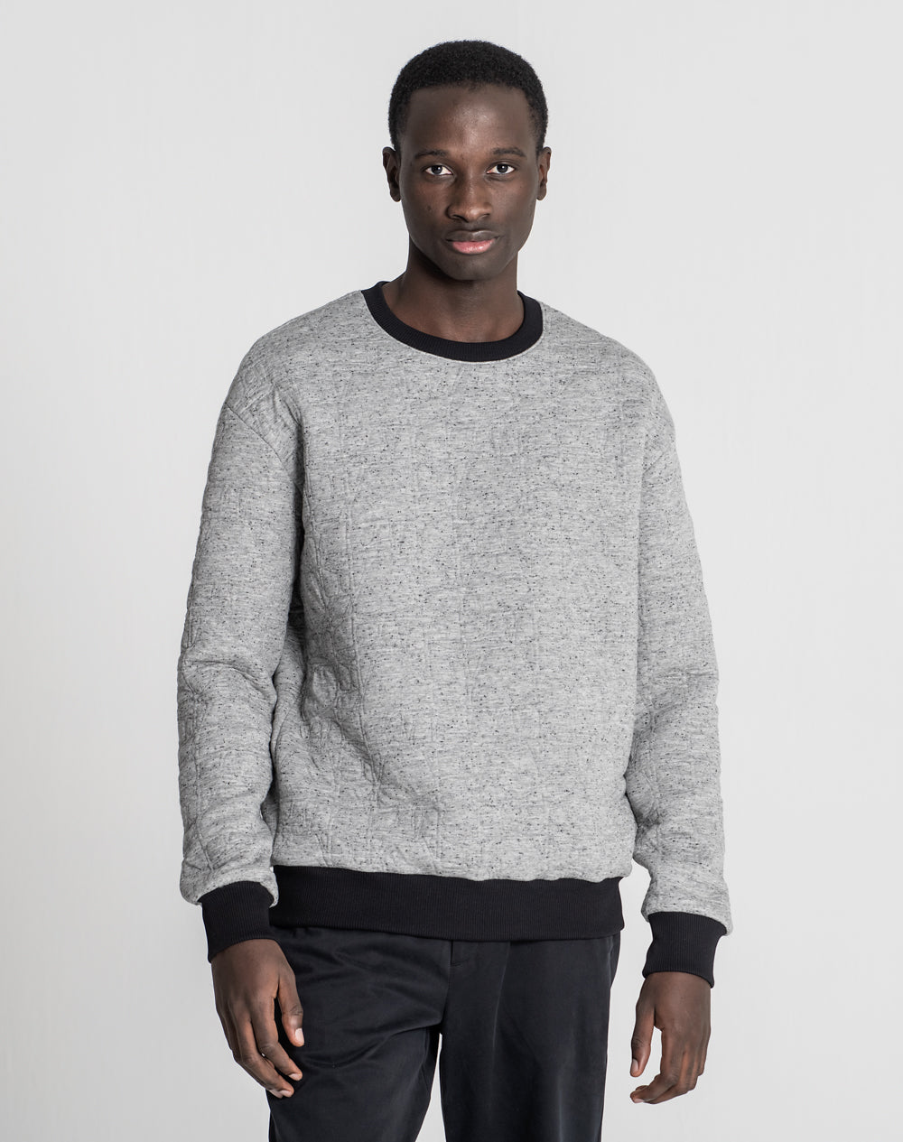 Sweatshirt em malha jacquard com decote redondo. Manga normal com cavas ligeiramente descidas. Etiqueta JEF preta na vertical.