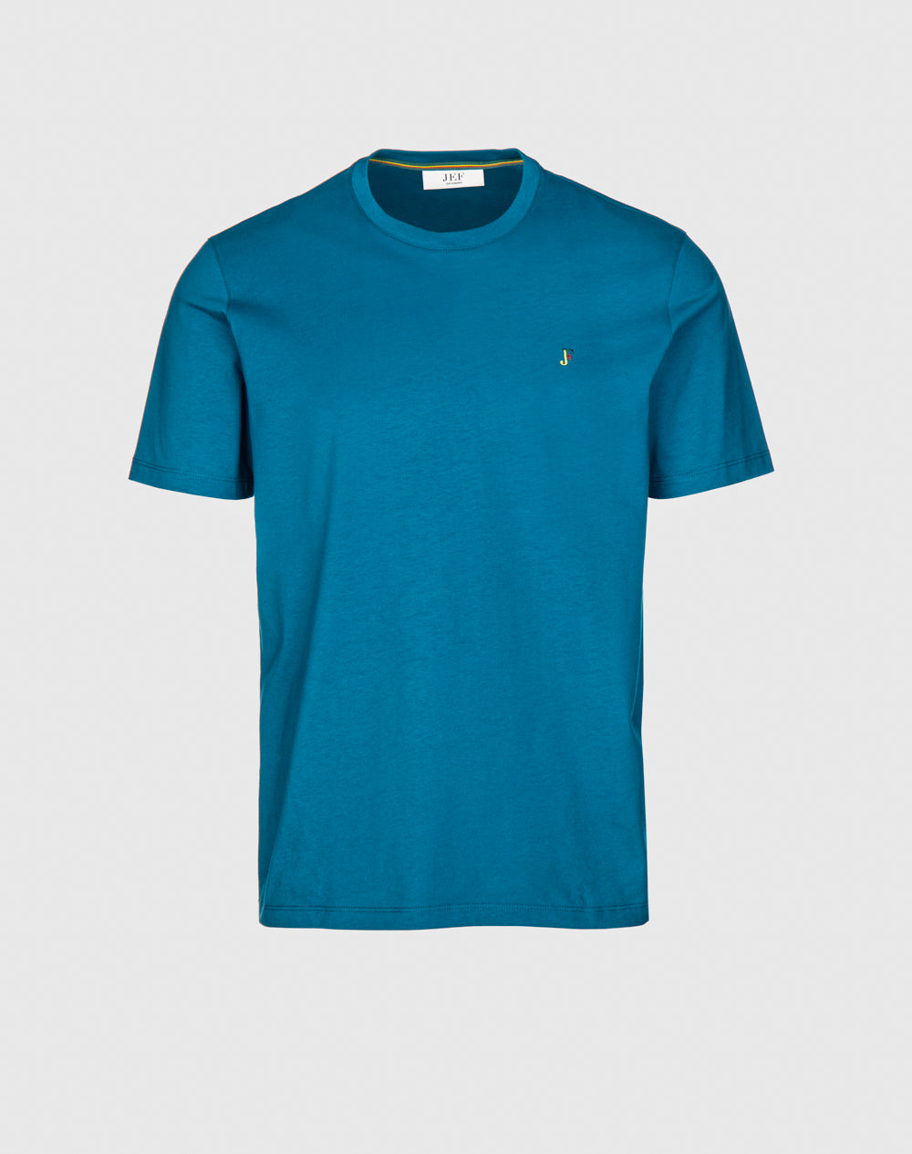 T-shirt em jersey orgânico com decote redondo. Tapa-costuras com cores da marca. Logótipo bordado com cores da marca.