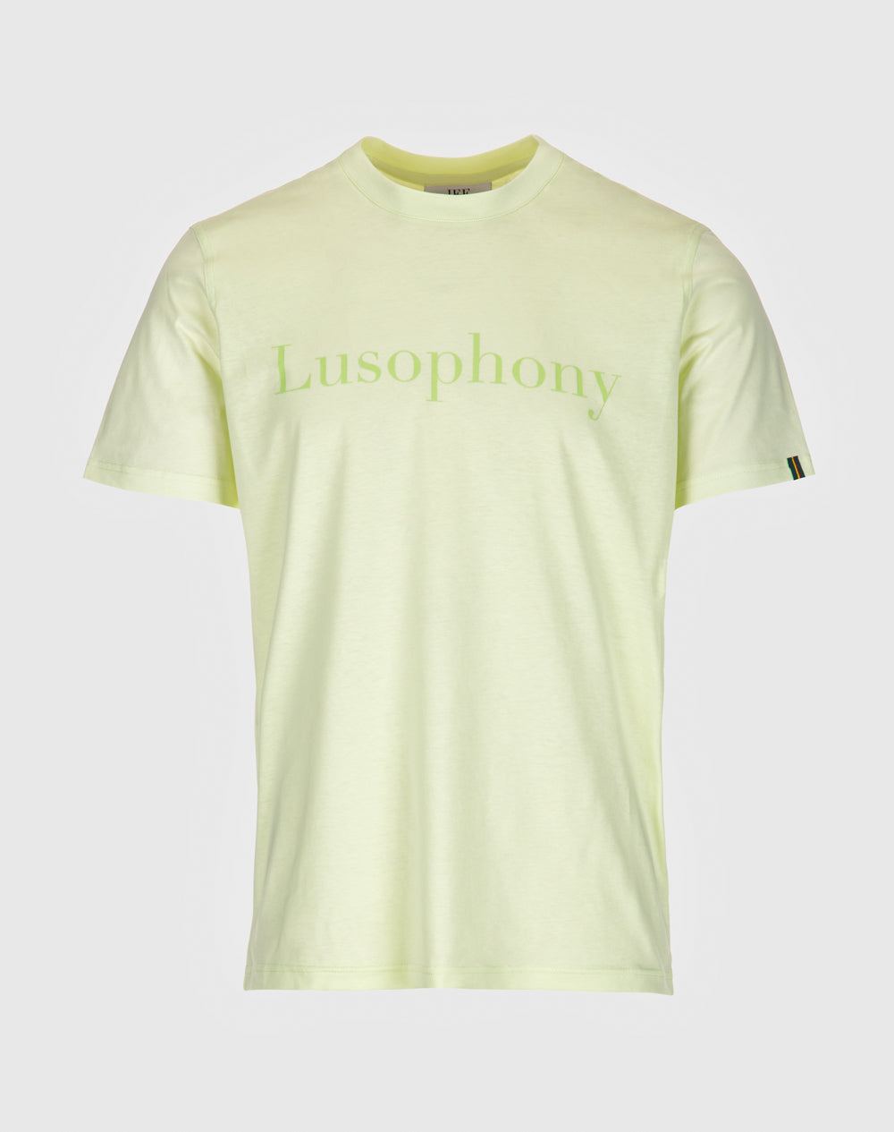 T-shirt em jersey orgânico com decote redondo. “Lusophony” estampado na frente à cor da peça. Logótipo da marca bordado à cor da peça nas costas. Fita de nastro com as cores da marca na lateral da manga.