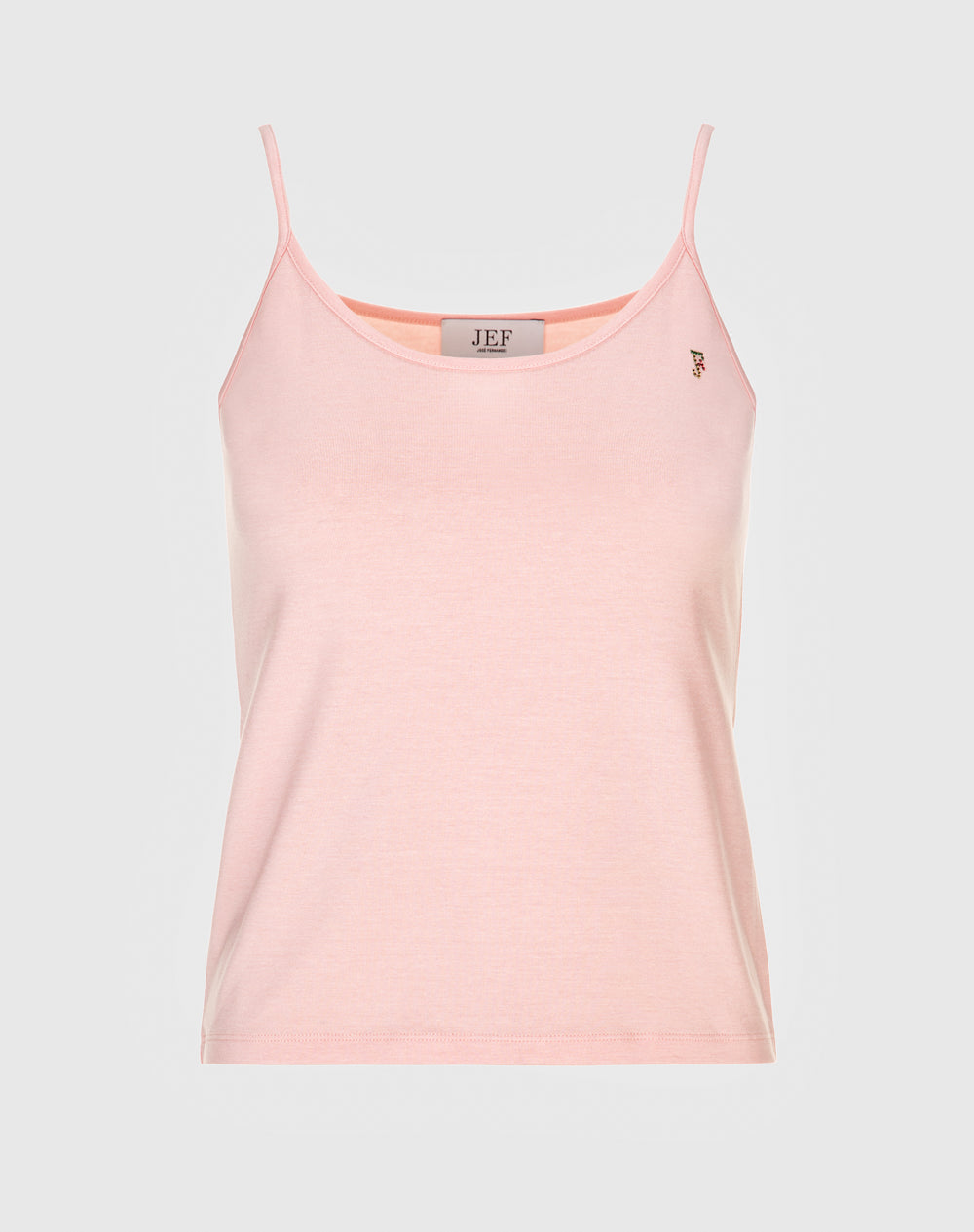 Top com alças em lyocell. Decote redondo. Logótipo da marca em pedras brilhantes com as cores da marca.